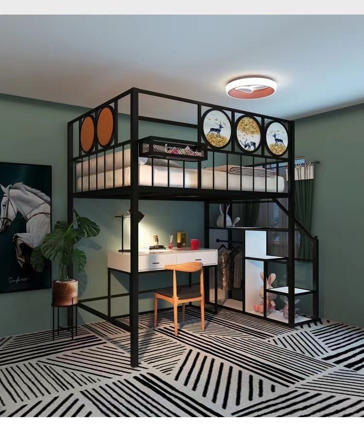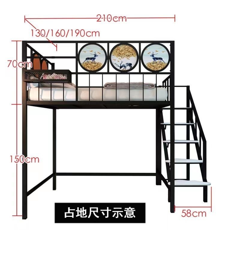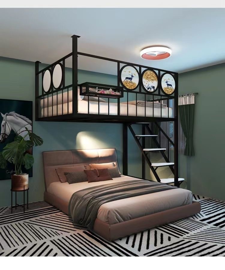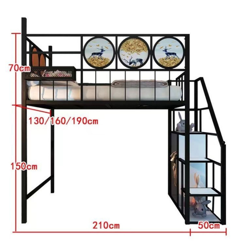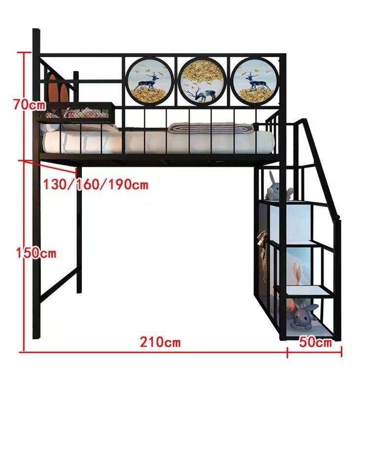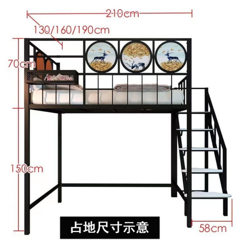 파빌리온 침대 현대 간단한 작은 아파트 철 높고 낮은 침대 다기능 공간 절약 높은 침대 시트 상부 철 침대스토어 가기