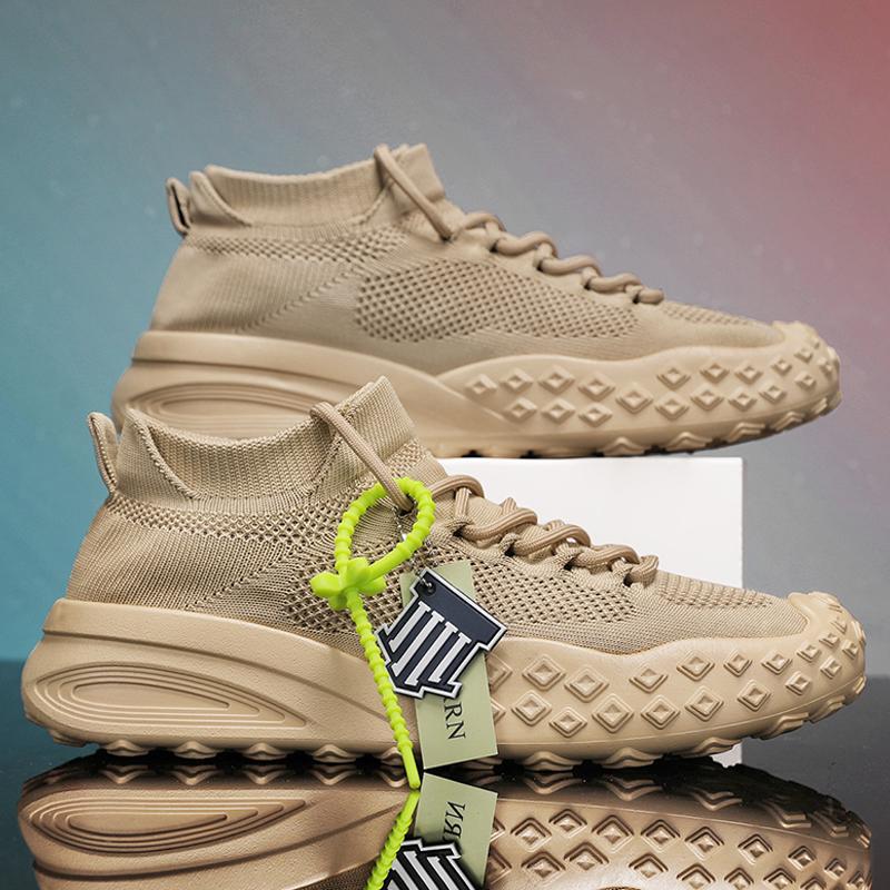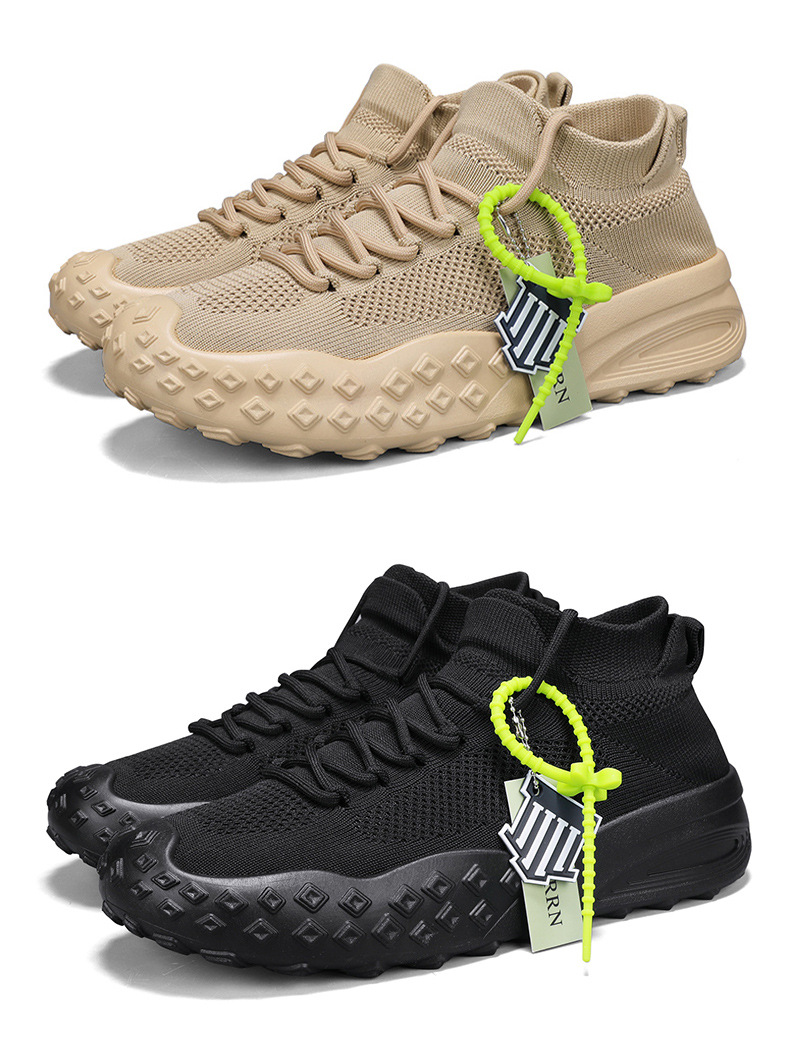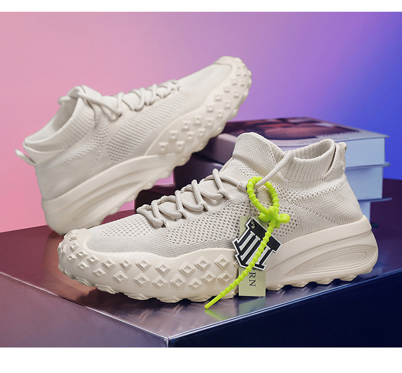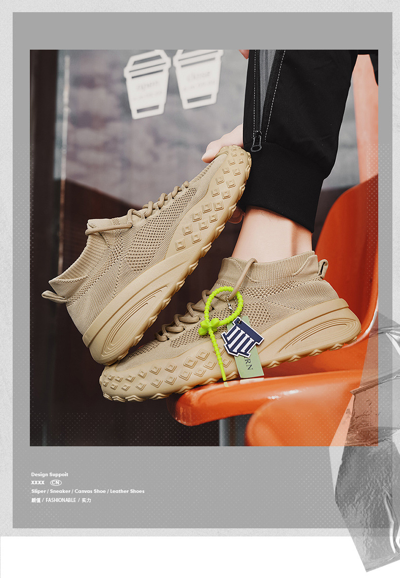 국경 간 남성 신발 2025 새로운 봄 메쉬 통기성 플라이 짠 메쉬 신발 청소년 스포츠 타이어 두꺼운 밑창 양말 신발스토어 가기