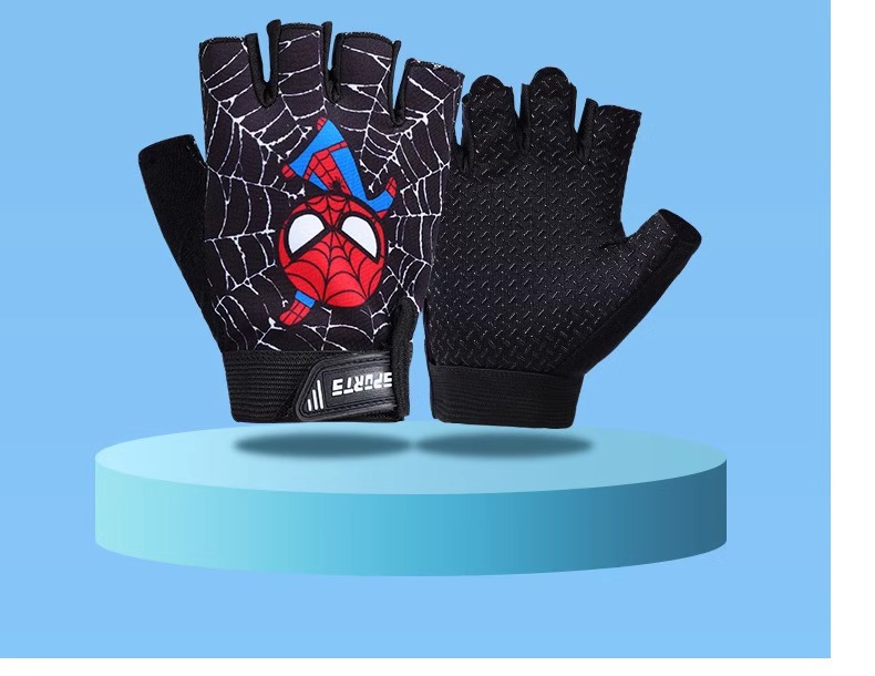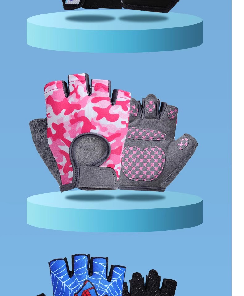 어린이 미끄럼 방지 반 손가락 사이클링 장갑, 내마모성, 소년 소녀용 자외선 차단 장갑, 스포츠 봄 여름 얇은 어린이 장갑