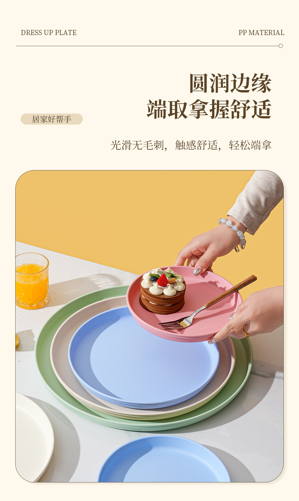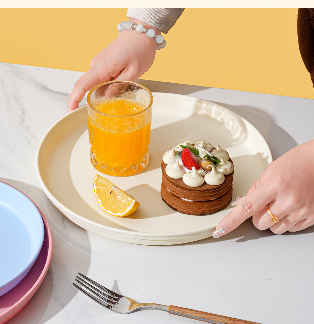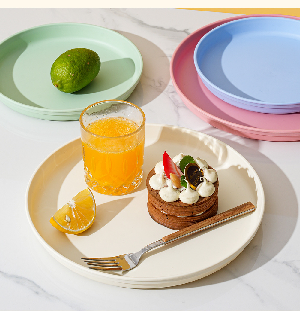 북유럽 스타일 플라스틱 트레이 두꺼운 도파민 밀 밀짚 디너 플레이트 가정용 높은 색상 가치 창조적 인 과일 스낵 플레이트