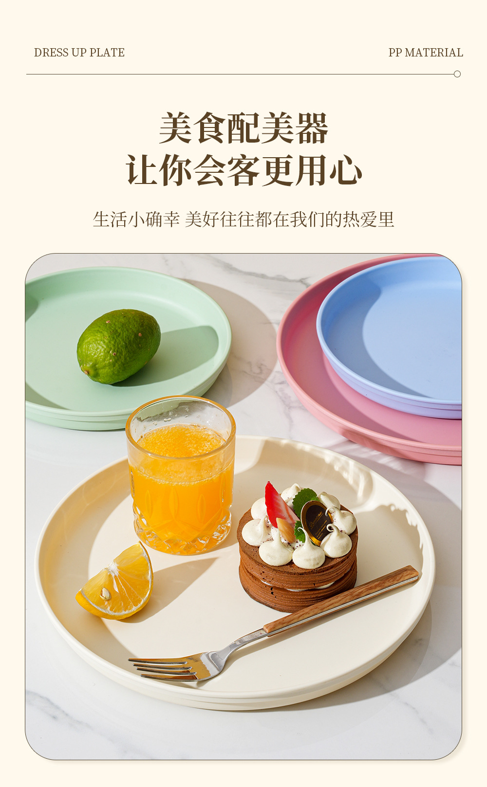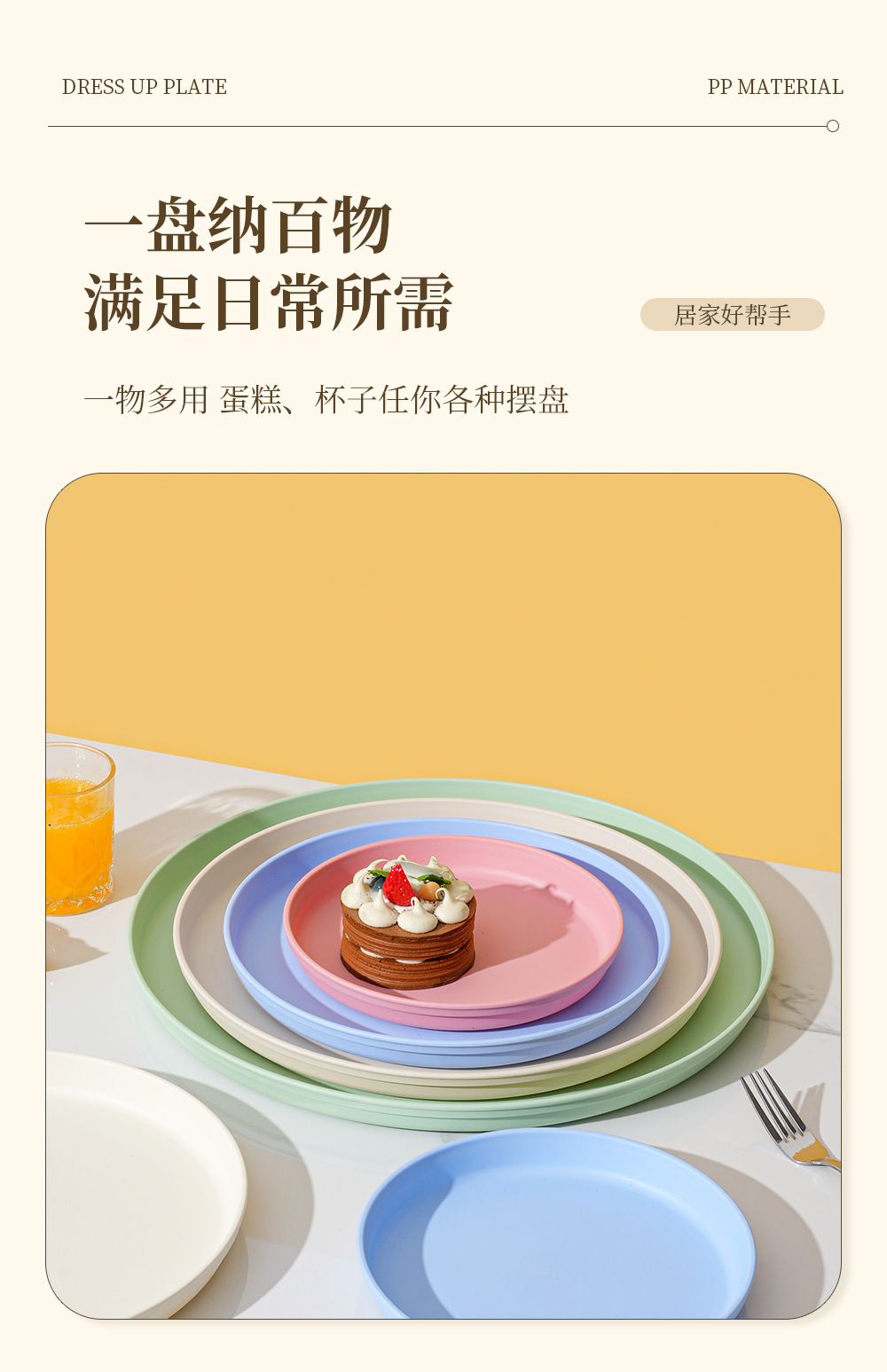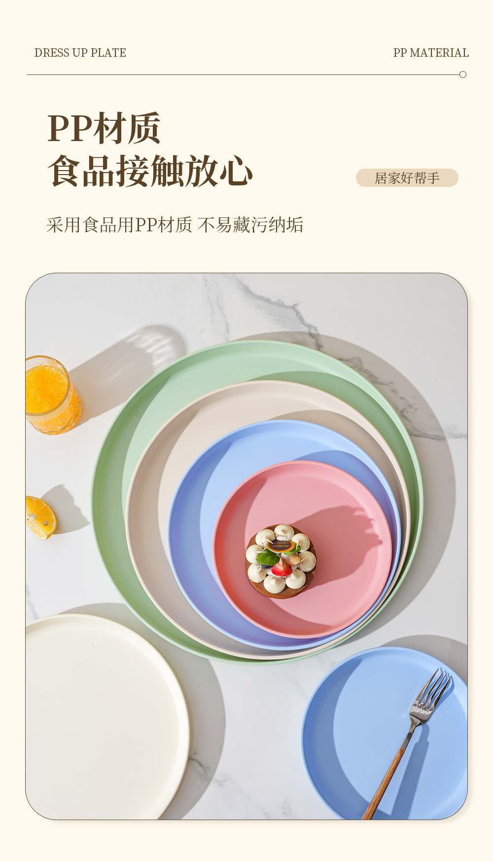 북유럽 스타일 플라스틱 트레이 두꺼운 도파민 밀 밀짚 디너 플레이트 가정용 높은 색상 가치 창조적 인 과일 스낵 플레이트