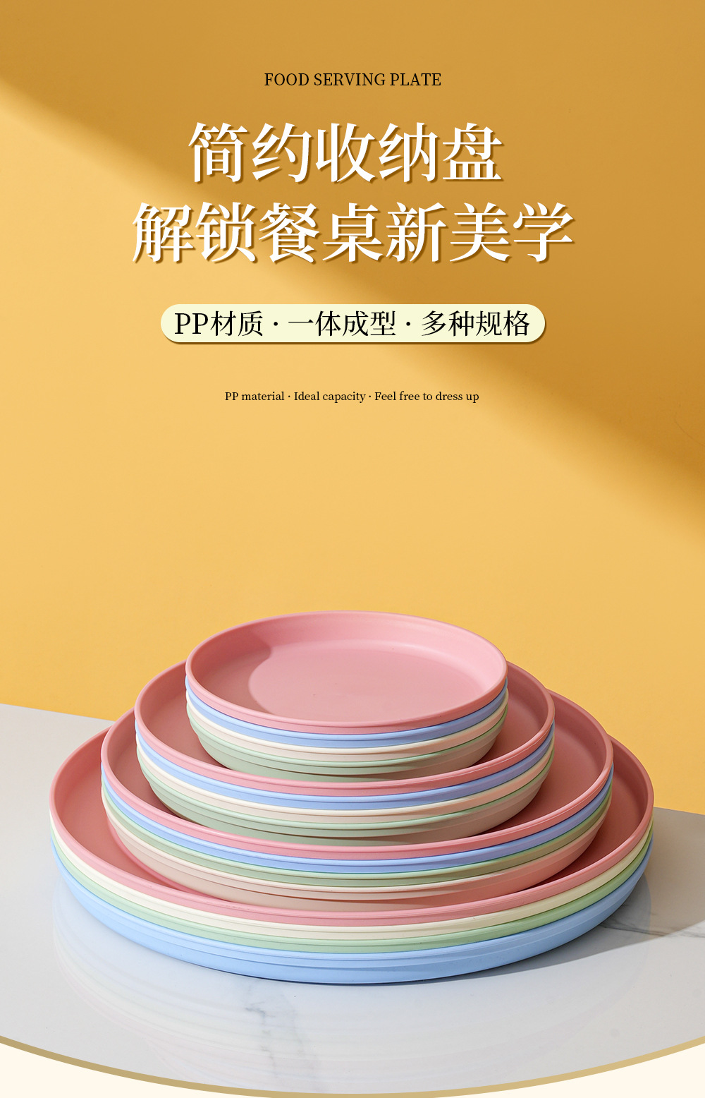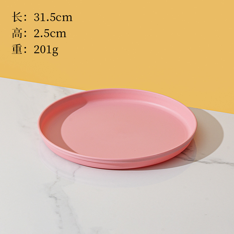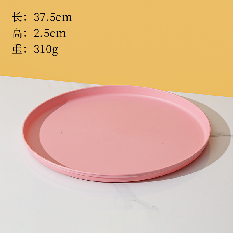 북유럽 스타일 플라스틱 트레이 두꺼운 도파민 밀 밀짚 디너 플레이트 가정용 높은 색상 가치 창조적 인 과일 스낵 플레이트스토어 가기