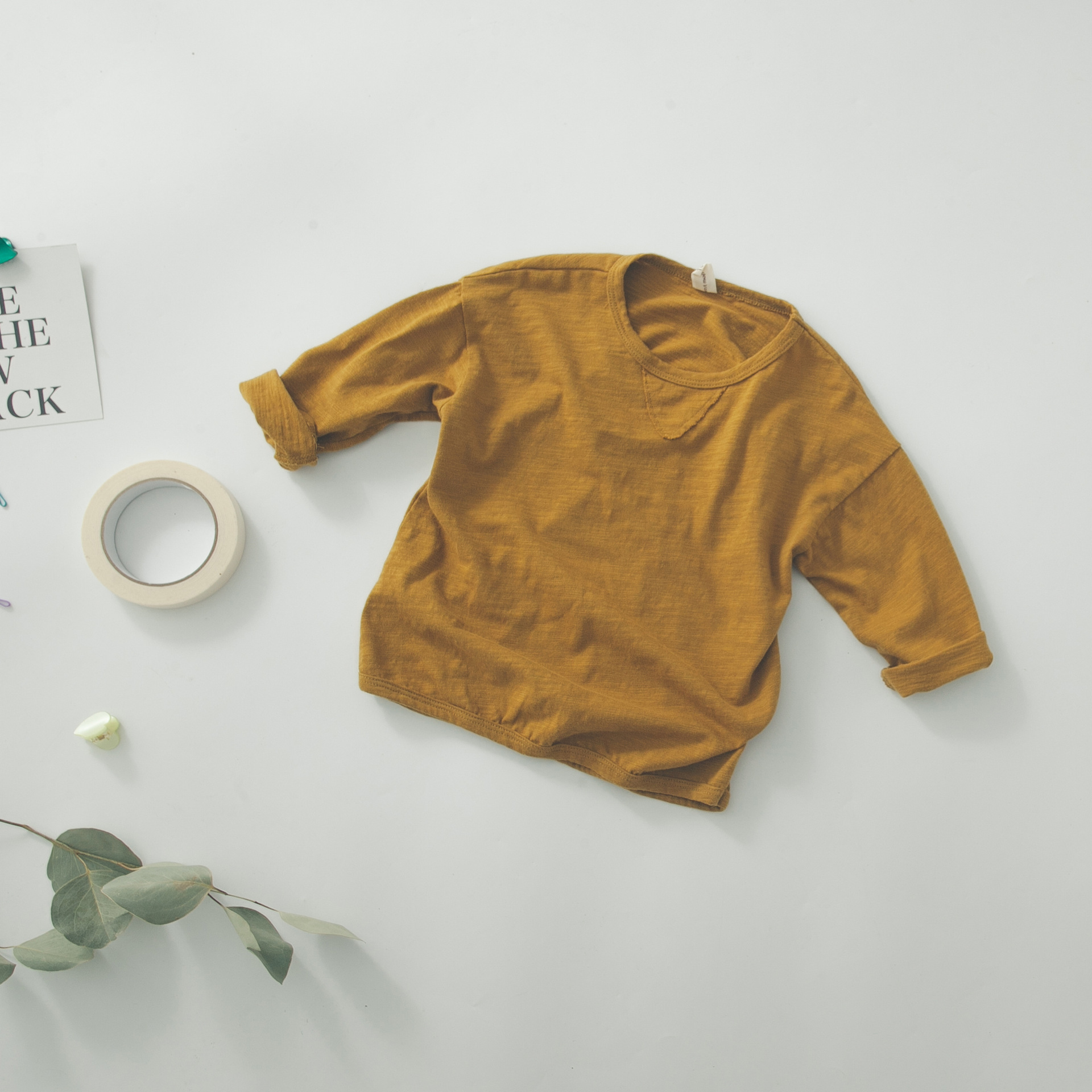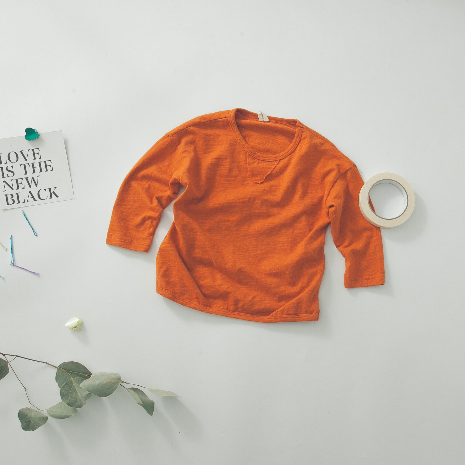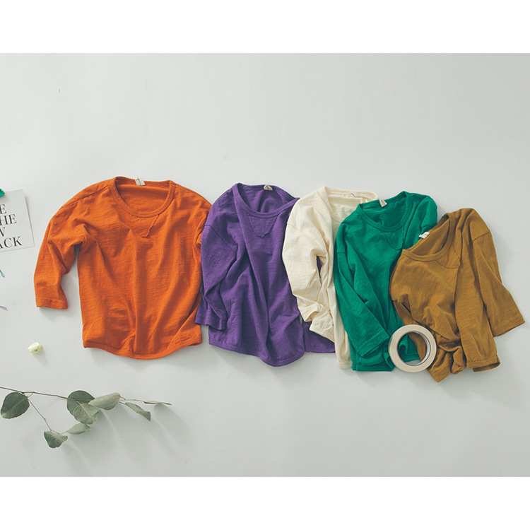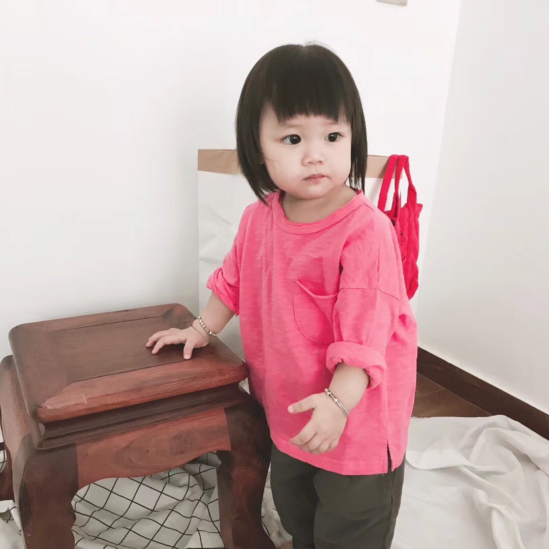 봄 아동용 하의 셔츠 단색 소년 티셔츠 긴팔 한국식 라운드 넥 다용도 소녀상의 대나무면 재고 있음