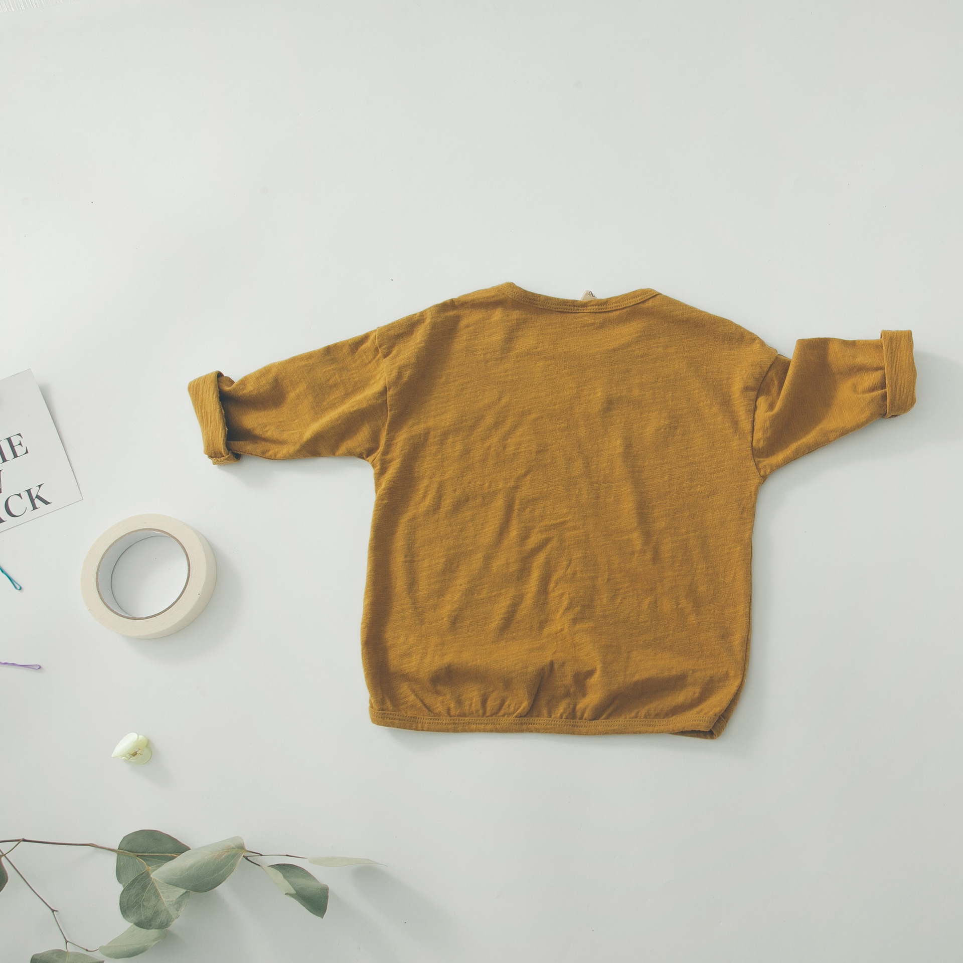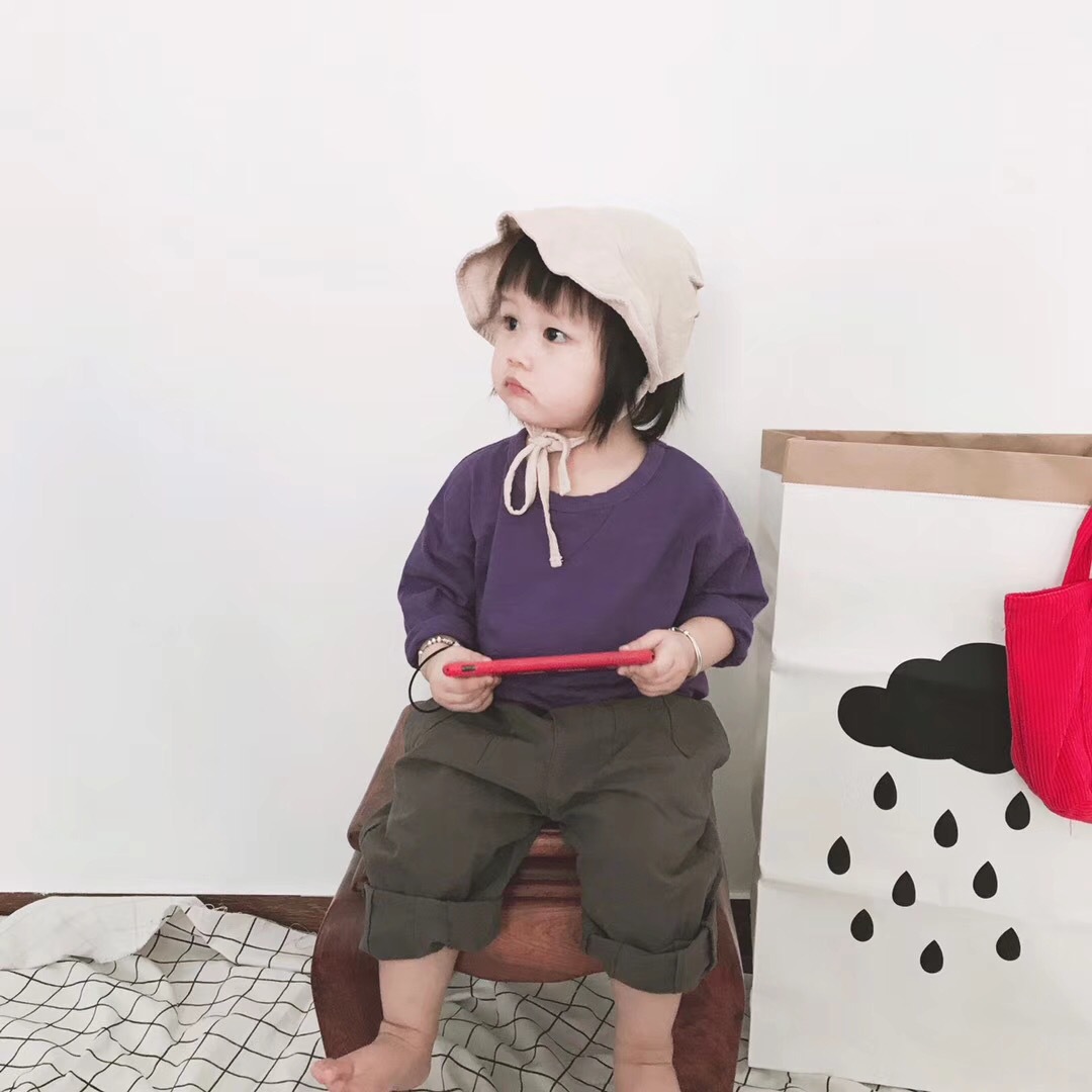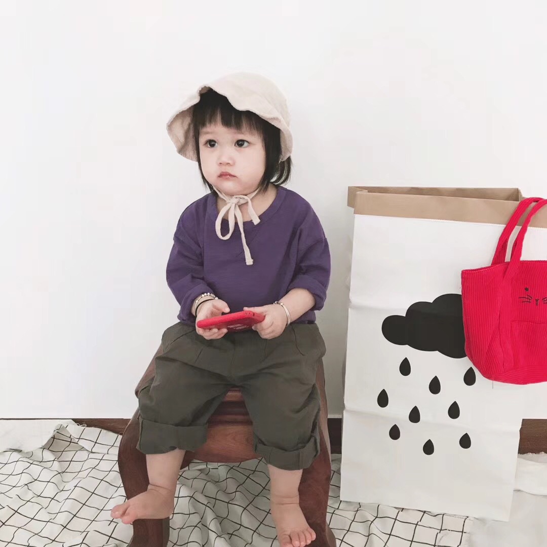봄 아동용 하의 셔츠 단색 소년 티셔츠 긴팔 한국식 라운드 넥 다용도 소녀상의 대나무면 재고 있음스토어 가기