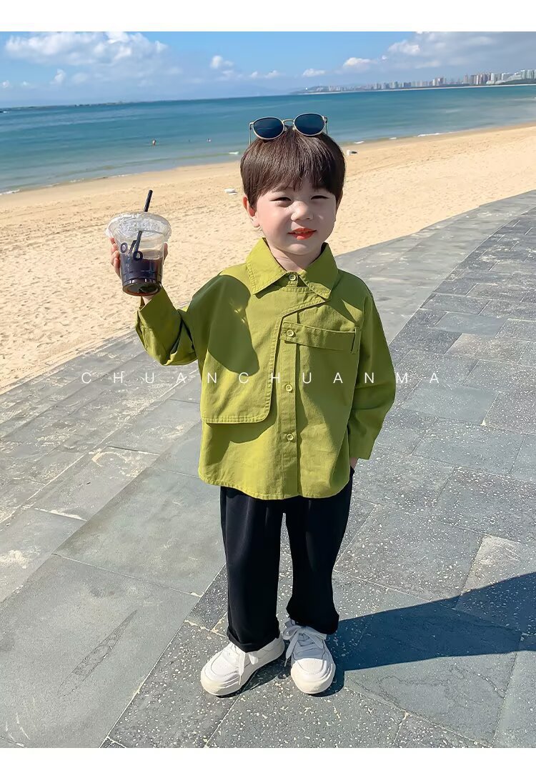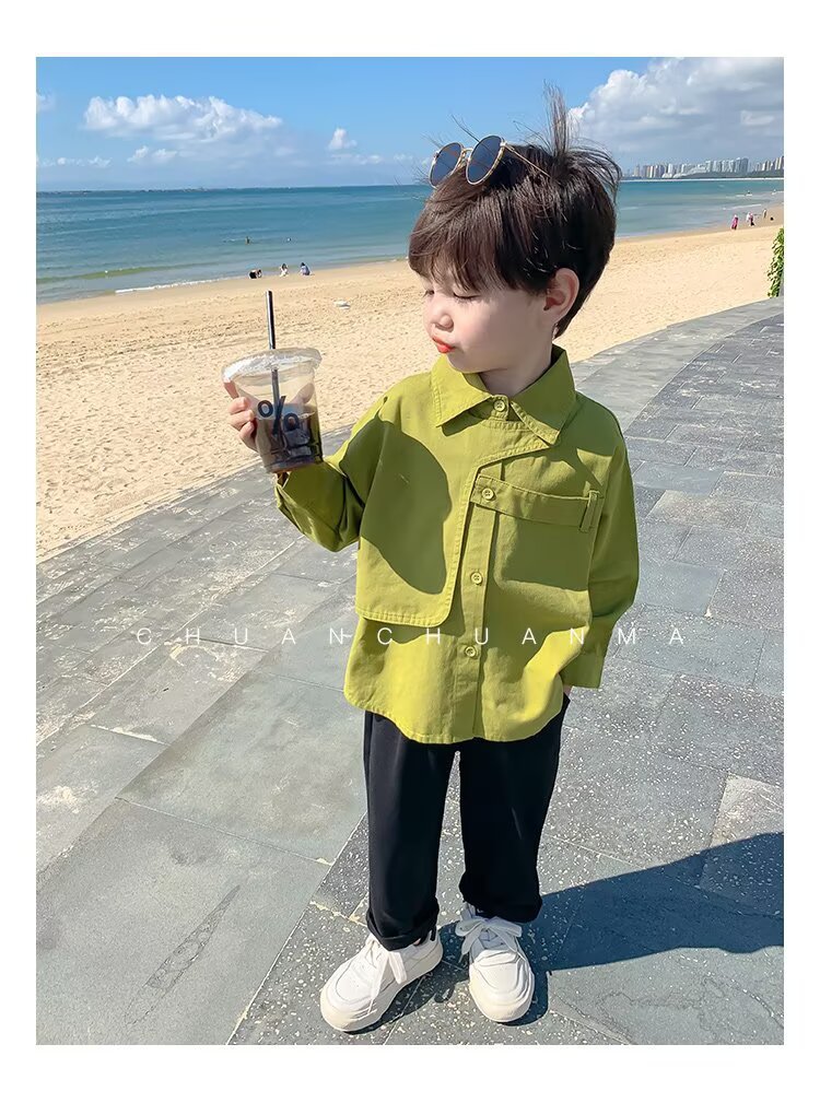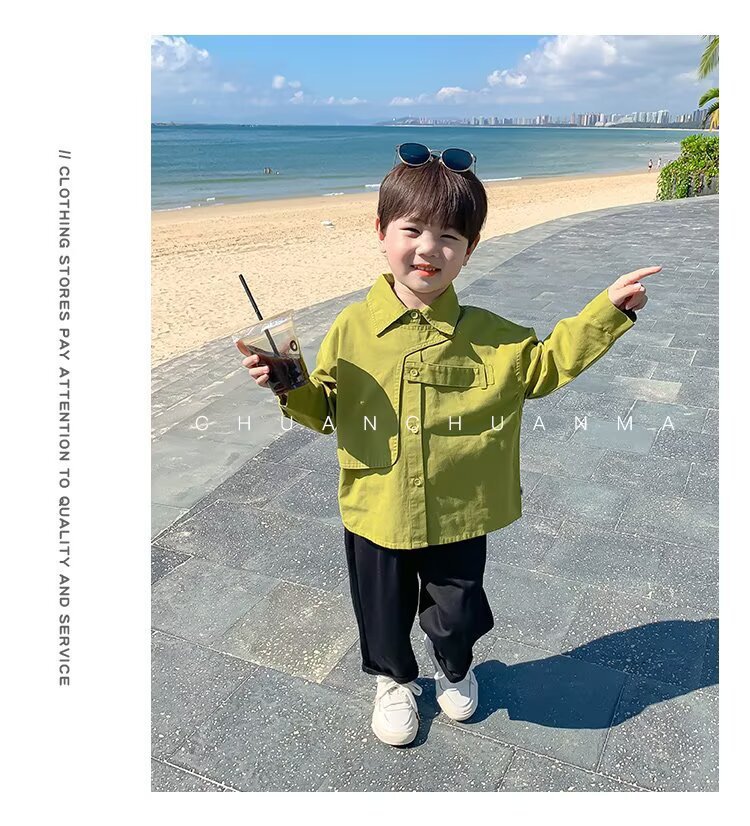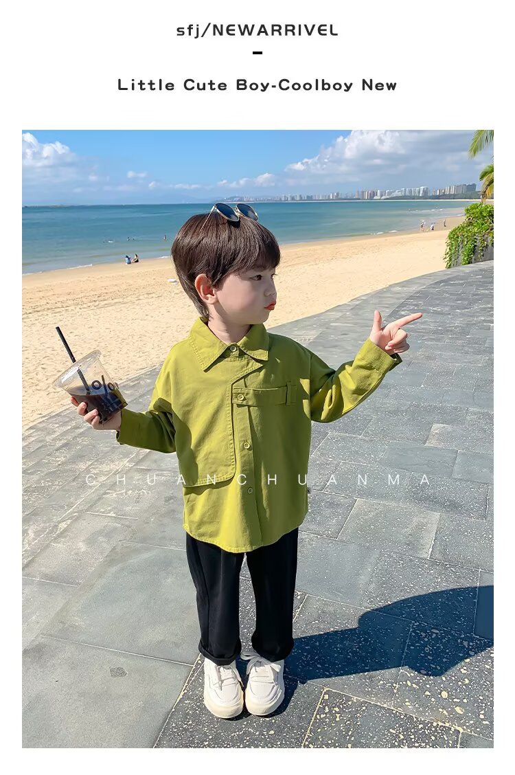 남아용 트렌디 셔츠 도매, 신상 봄 가을 아기용 스트리트 스타일 상의, 남아용 캐주얼 멋스럽고 다재다능한 패셔너블 셔츠스토어 가기