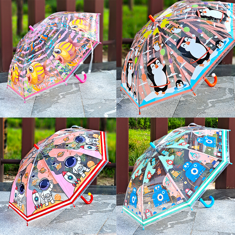 투명 만화 어린이 우산 두꺼운 경량 귀여운 공주 우산 소녀 소년 아기 우산 안전 엘사 공주스토어 가기