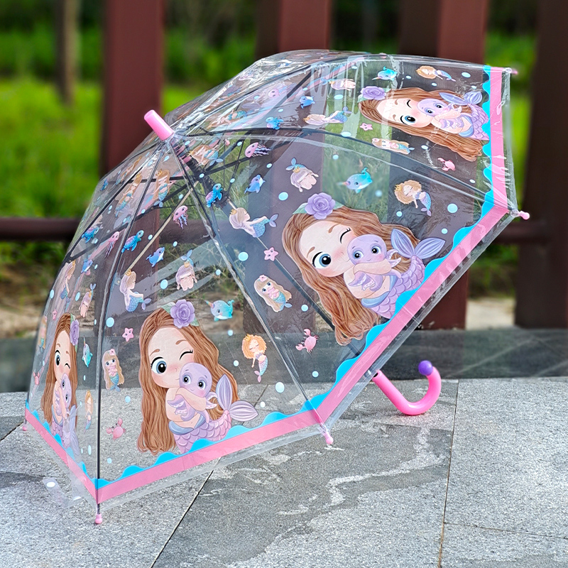 투명 만화 어린이 우산 두꺼운 경량 귀여운 공주 우산 소녀 소년 아기 우산 안전 엘사 공주
