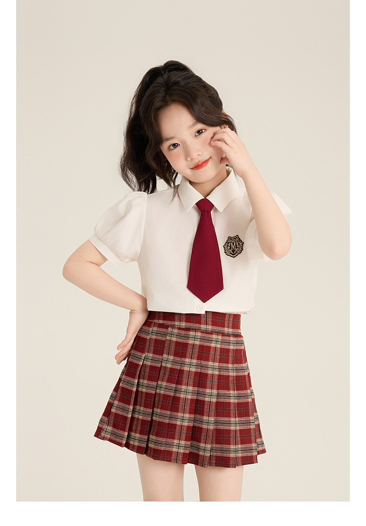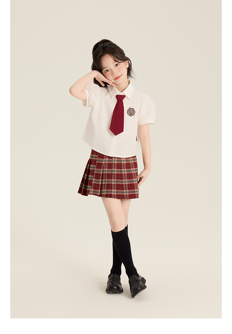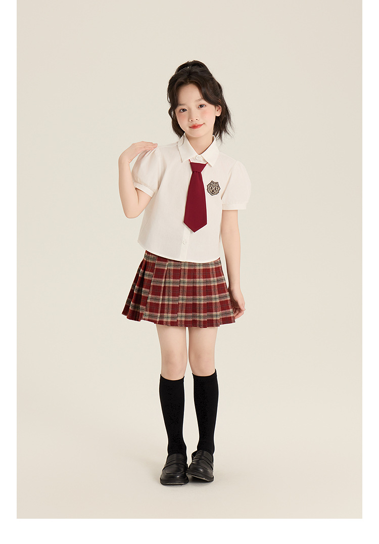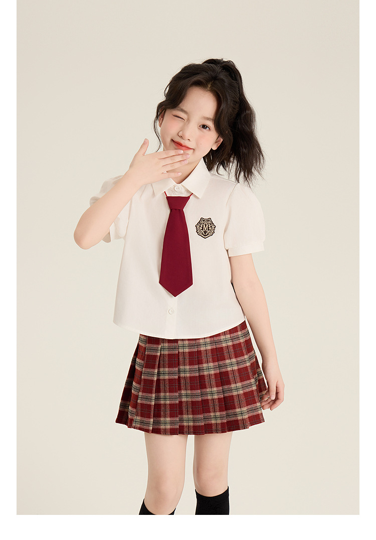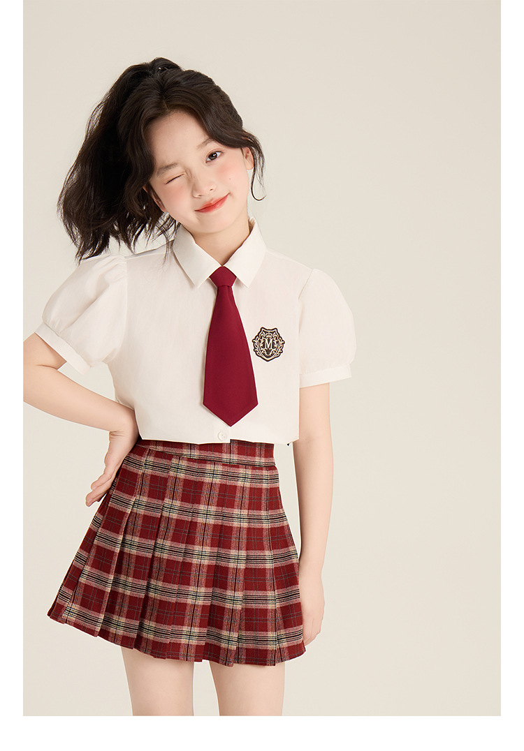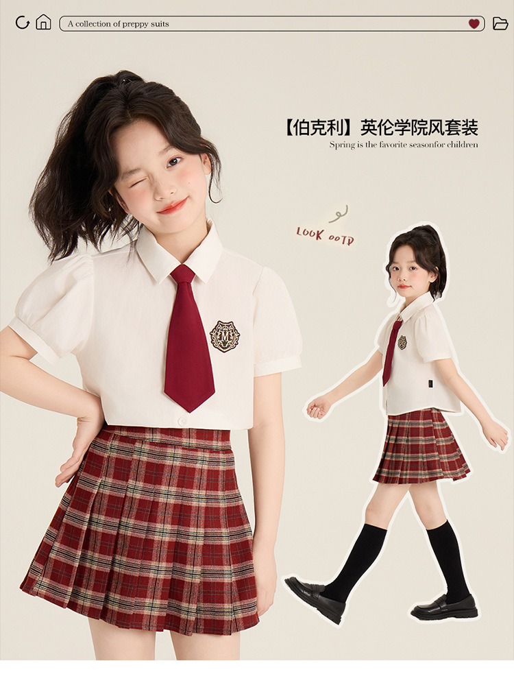 Amybaby 소녀 세트 여름 2025 새로운 영국 아카데미 스타일 간단한 퍼프 소매 셔츠 주름 치마