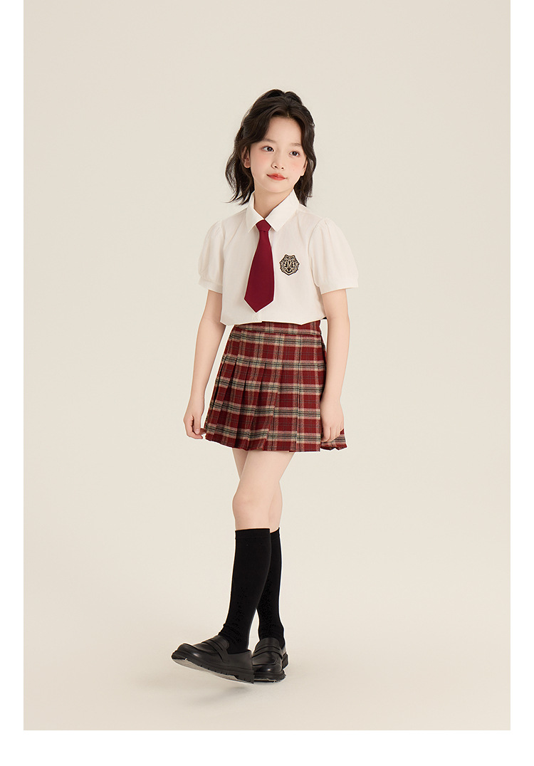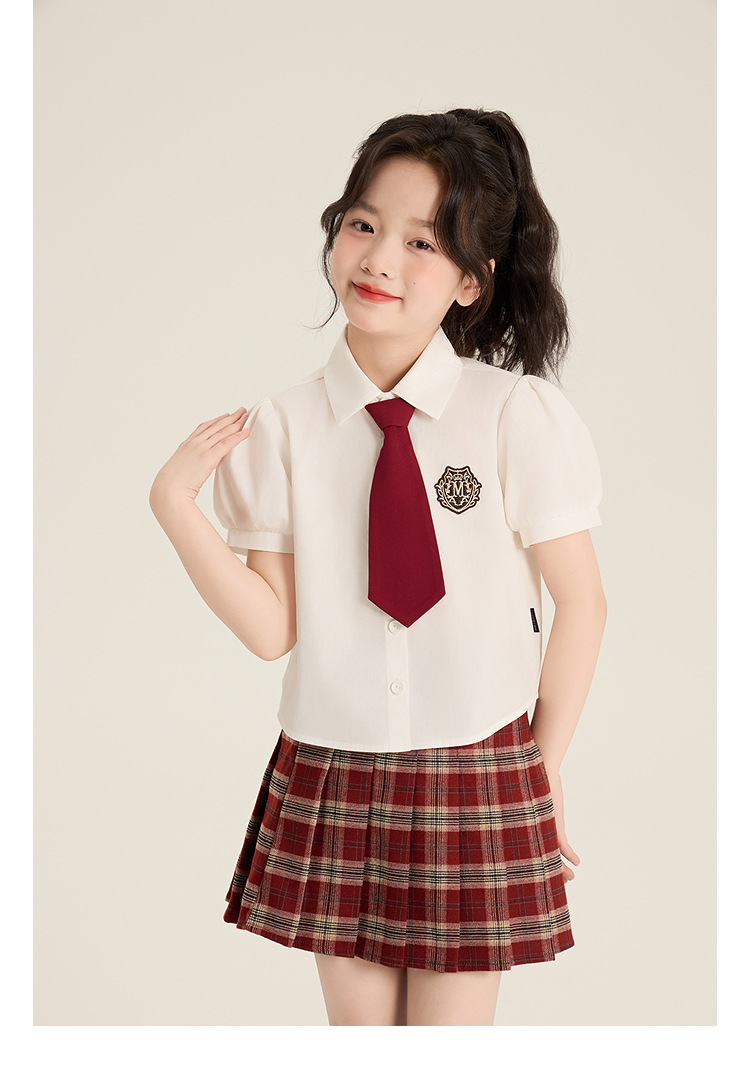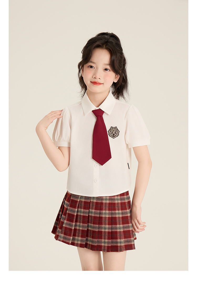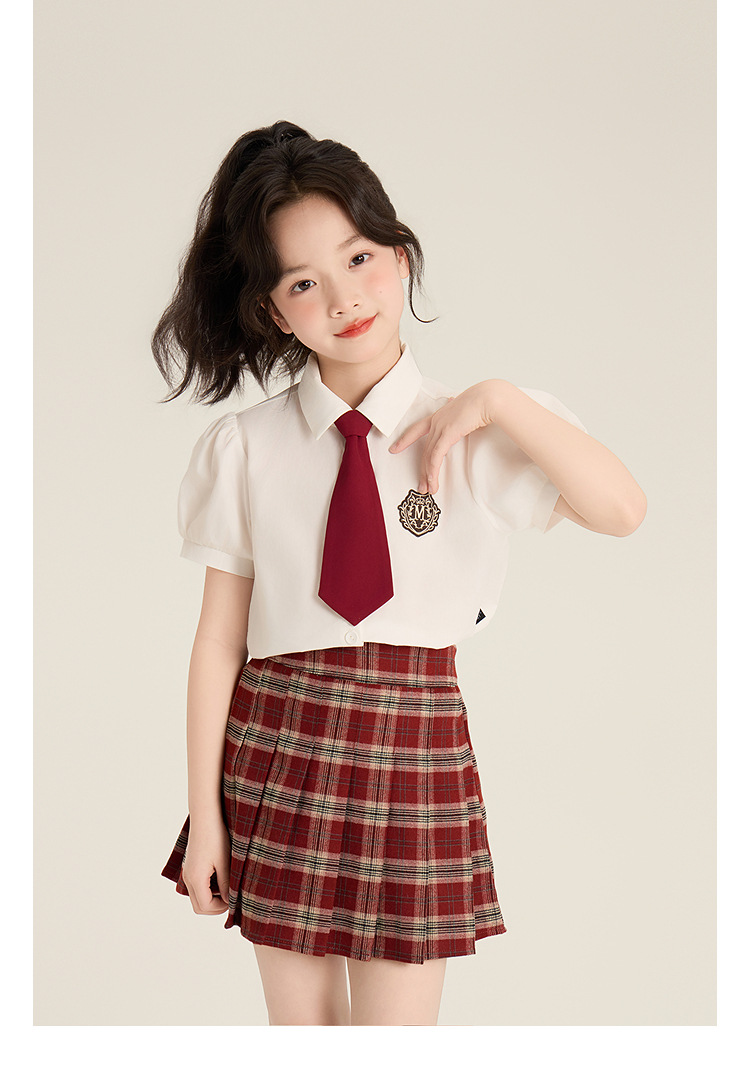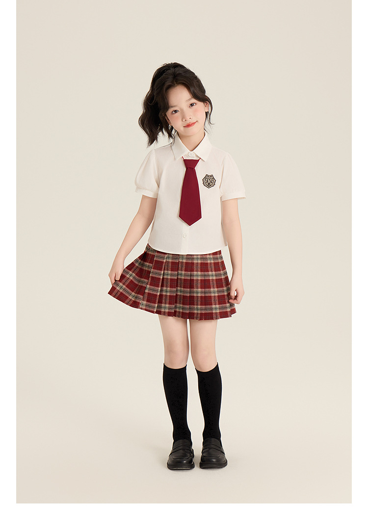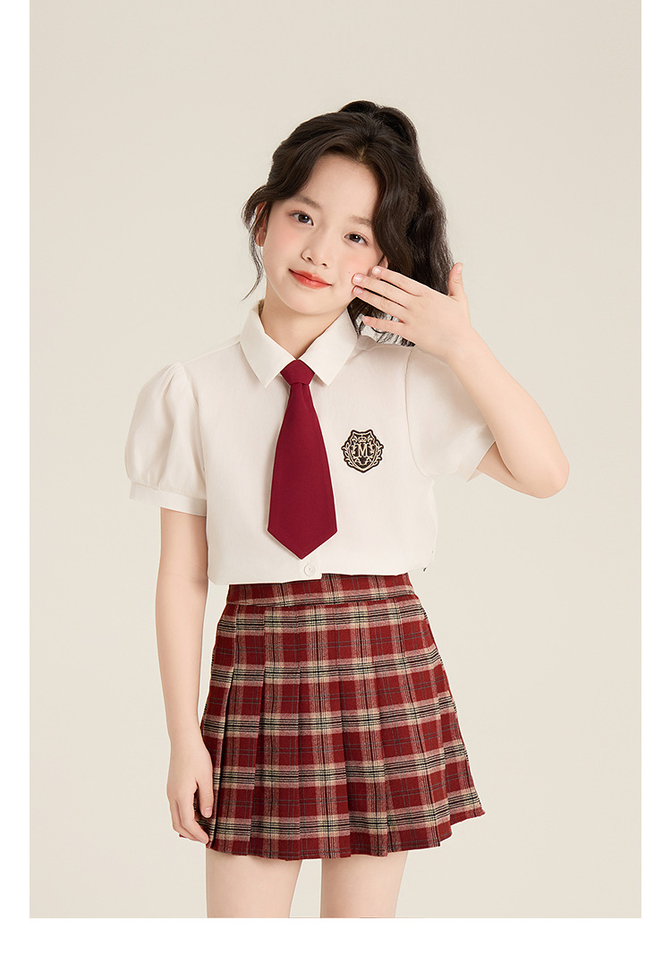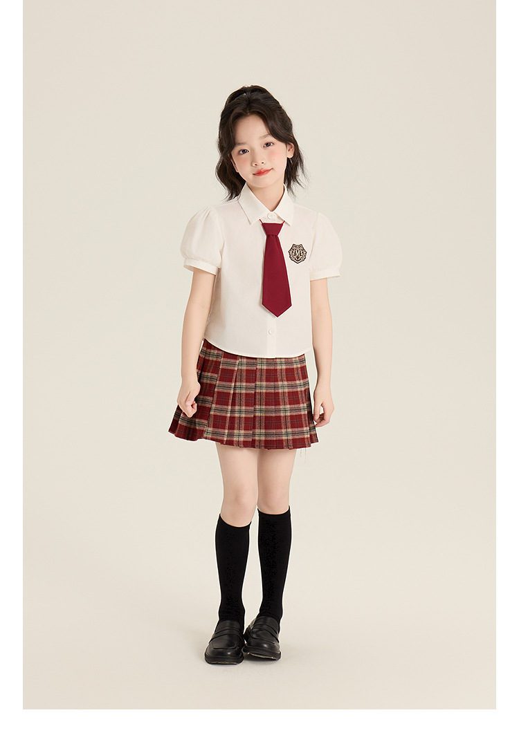 Amybaby 소녀 세트 여름 2025 새로운 영국 아카데미 스타일 간단한 퍼프 소매 셔츠 주름 치마