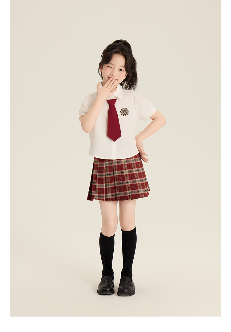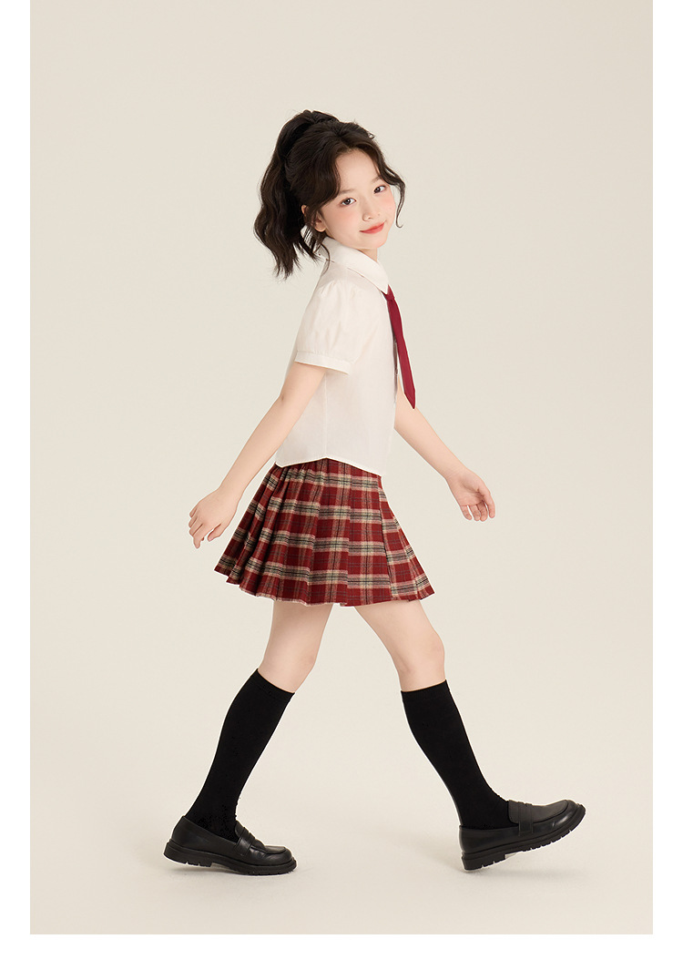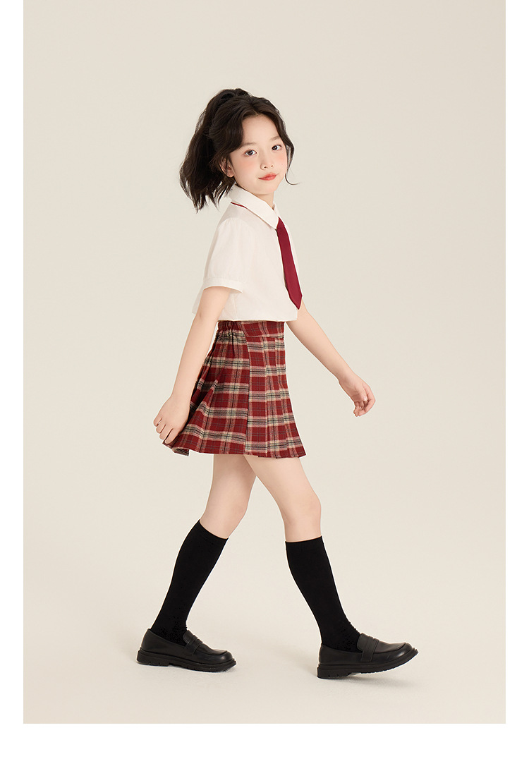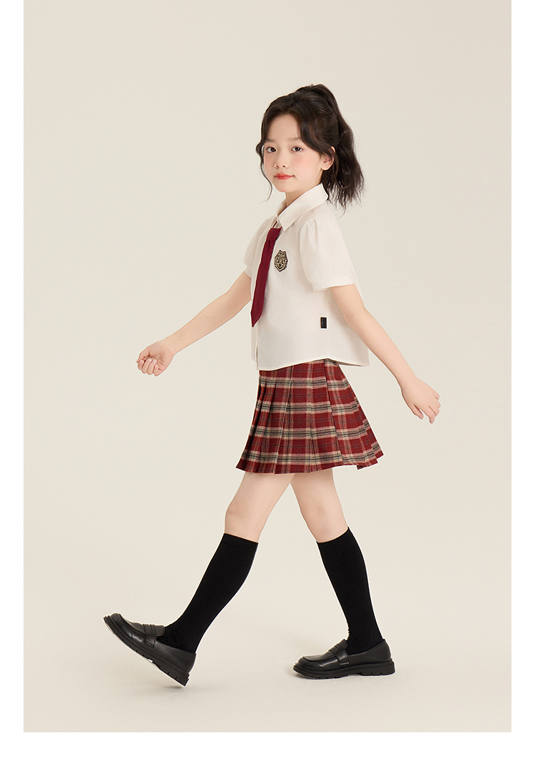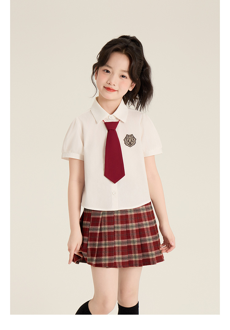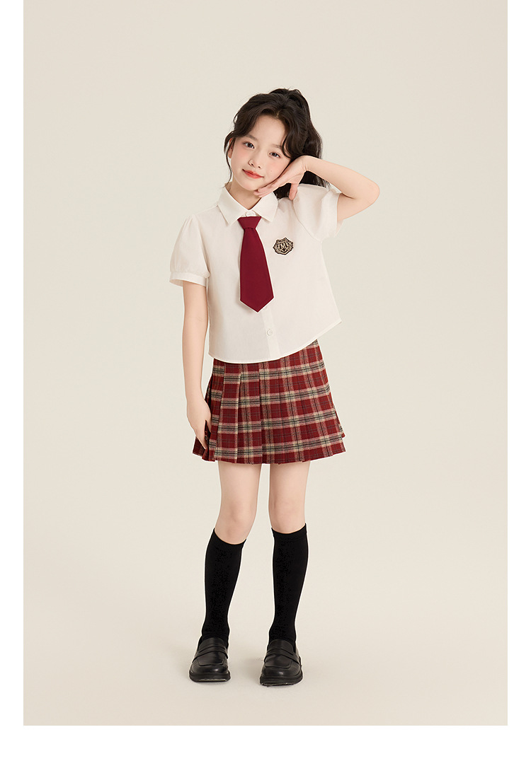 Amybaby 소녀 세트 여름 2025 새로운 영국 아카데미 스타일 간단한 퍼프 소매 셔츠 주름 치마
