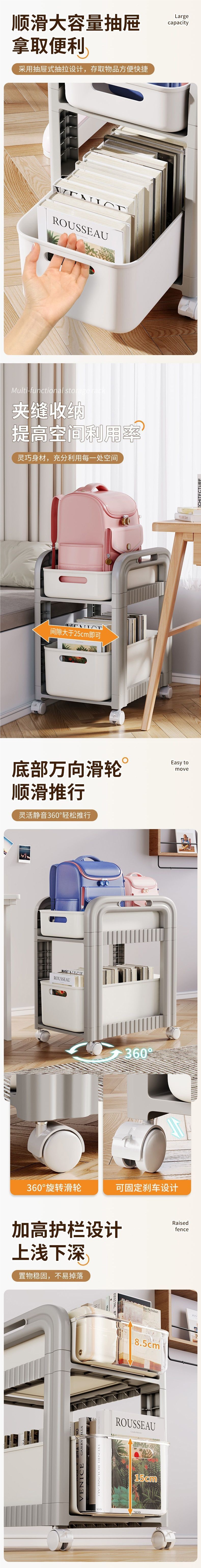 조용한 학교 가방 학생 저장 랙 모바일 카트 다층 책 저장 바닥 서 가정용 테이블 풀리스토어 가기
