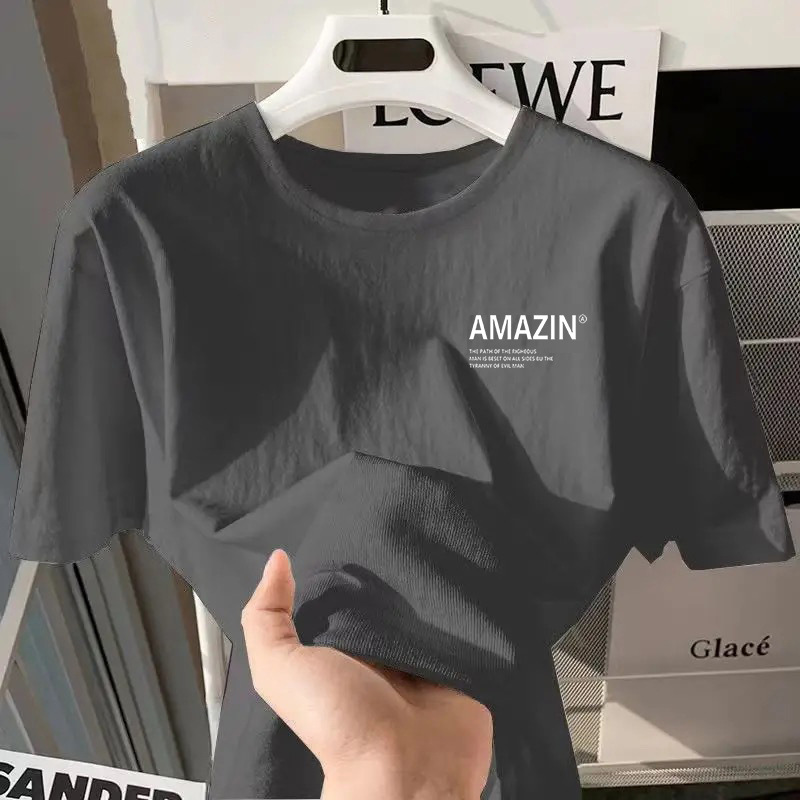 2025 새로운 소년 반팔 티셔츠 유행 캐주얼 인쇄 느슨한 반팔 여름 새로운베이스 셔츠 옷스토어 가기