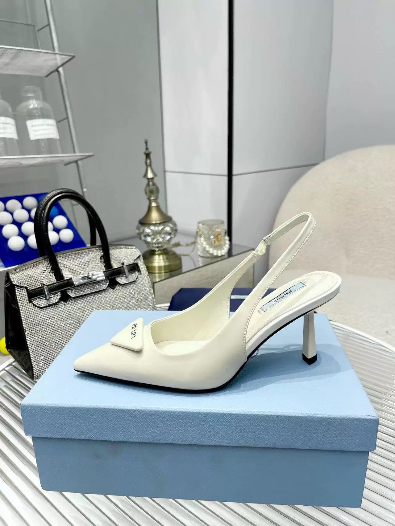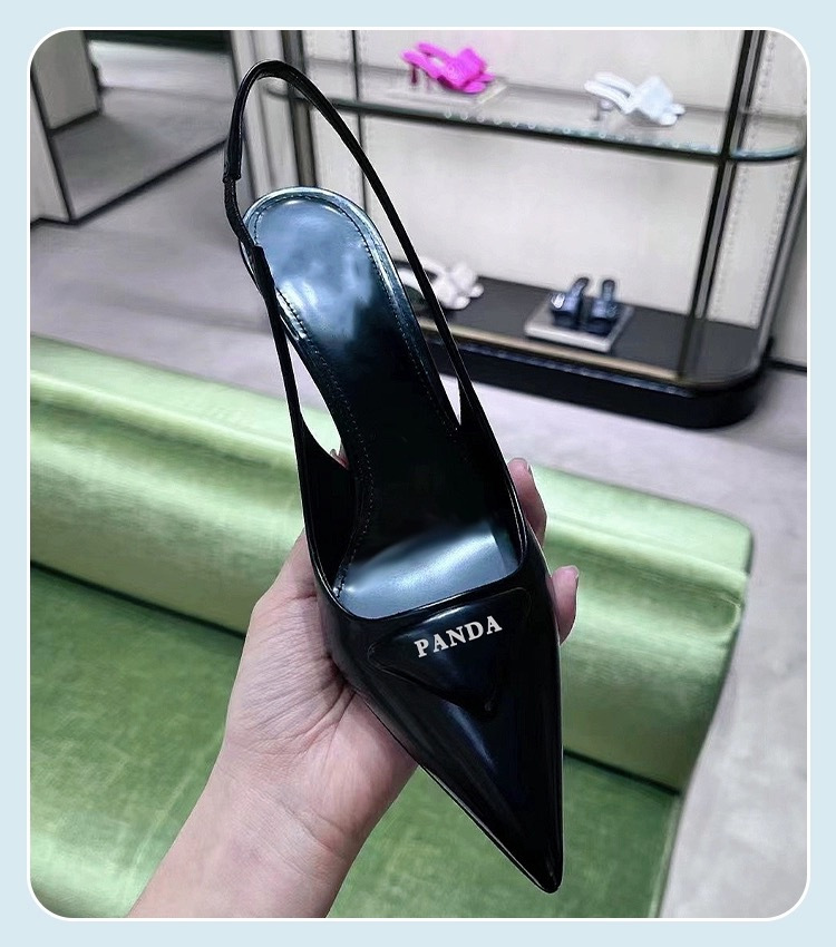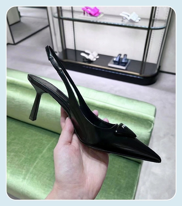P의 하이힐, 뾰족한 발가락, 얇은 굽, 뒷면이 빈 섹시한 기질, 통근용 삼각형 로고 샌들스토어 가기