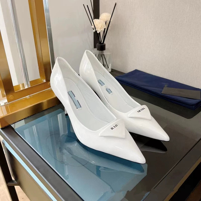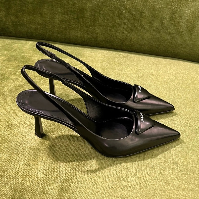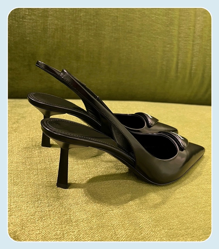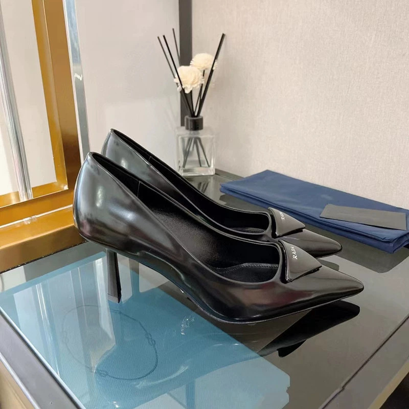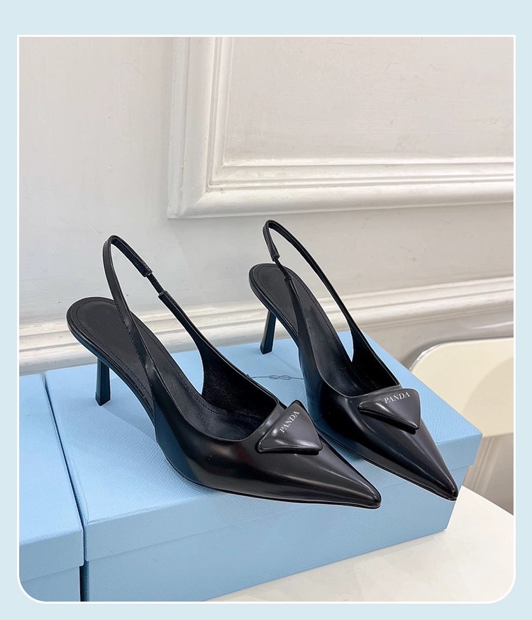 P의 하이힐, 뾰족한 발가락, 얇은 굽, 뒷면이 빈 섹시한 기질, 통근용 삼각형 로고 샌들