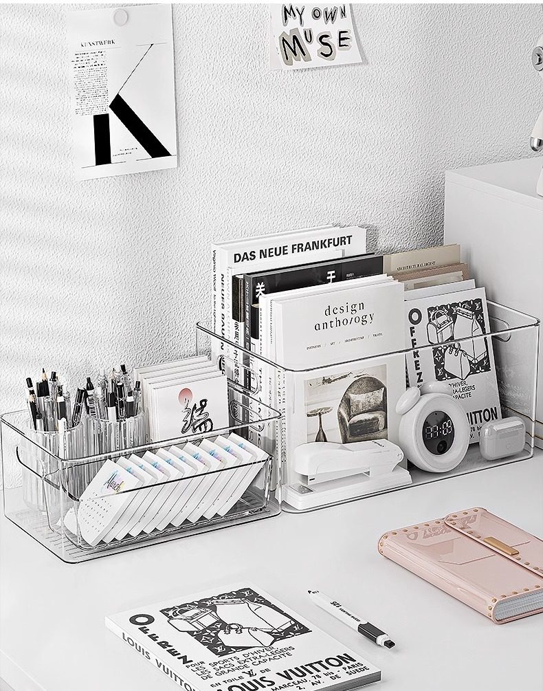 데스크탑 저장 상자 아크릴 투명 기숙사 책상 문구 책 보관 랙 파일 상자 사무실 파일 바구니스토어 가기