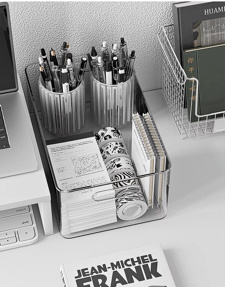 데스크탑 저장 상자 아크릴 투명 기숙사 책상 문구 책 보관 랙 파일 상자 사무실 파일 바구니