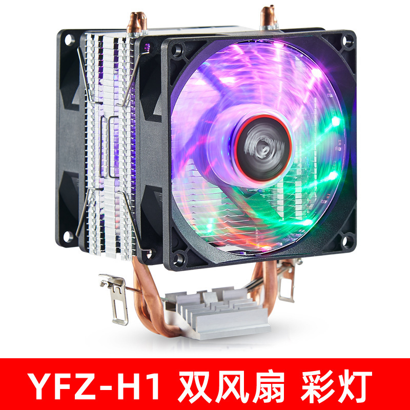 Yue Fei Chuan H1 듀얼 히트 파이프 CPU 라디에이터 i7/AM4/1366 데스크탑 컴퓨터 CPU 팬 9cm 울트라 조용함