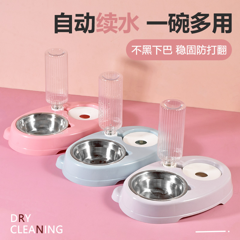 고양이 그릇, 개 그릇, 이중 그릇, 고양이 먹이 그릇, 새끼 고양이 보호, 경추 보호, 개 스테인레스 스틸 밥 그릇, 식수, 뒤집힘 방지 도매스토어 가기