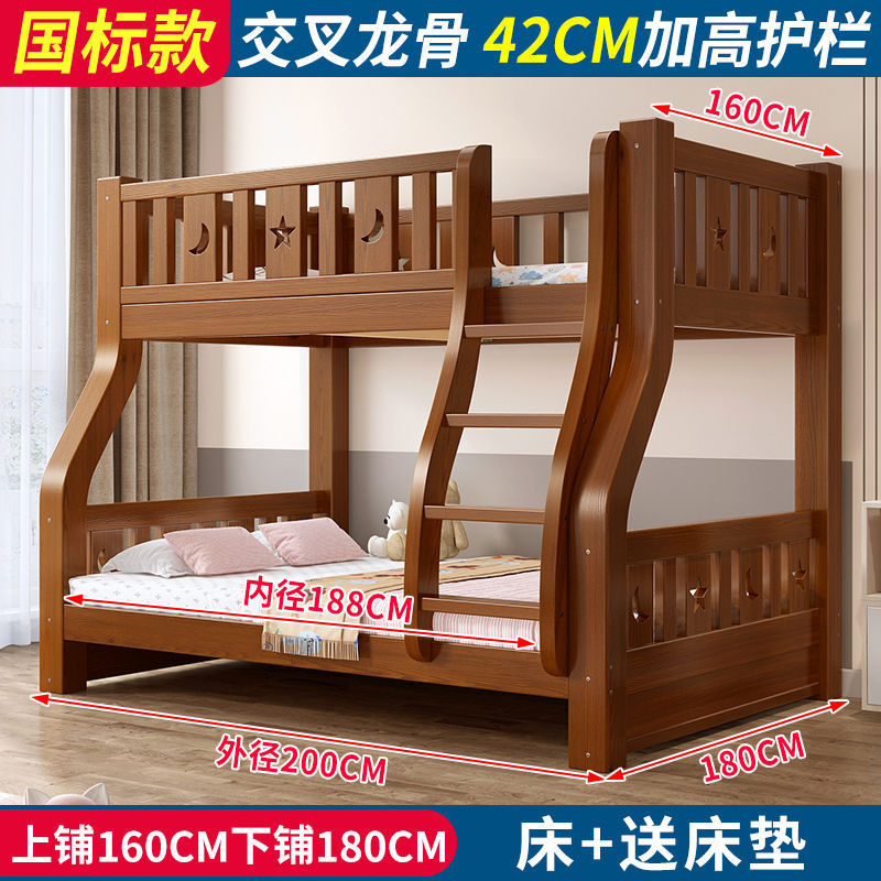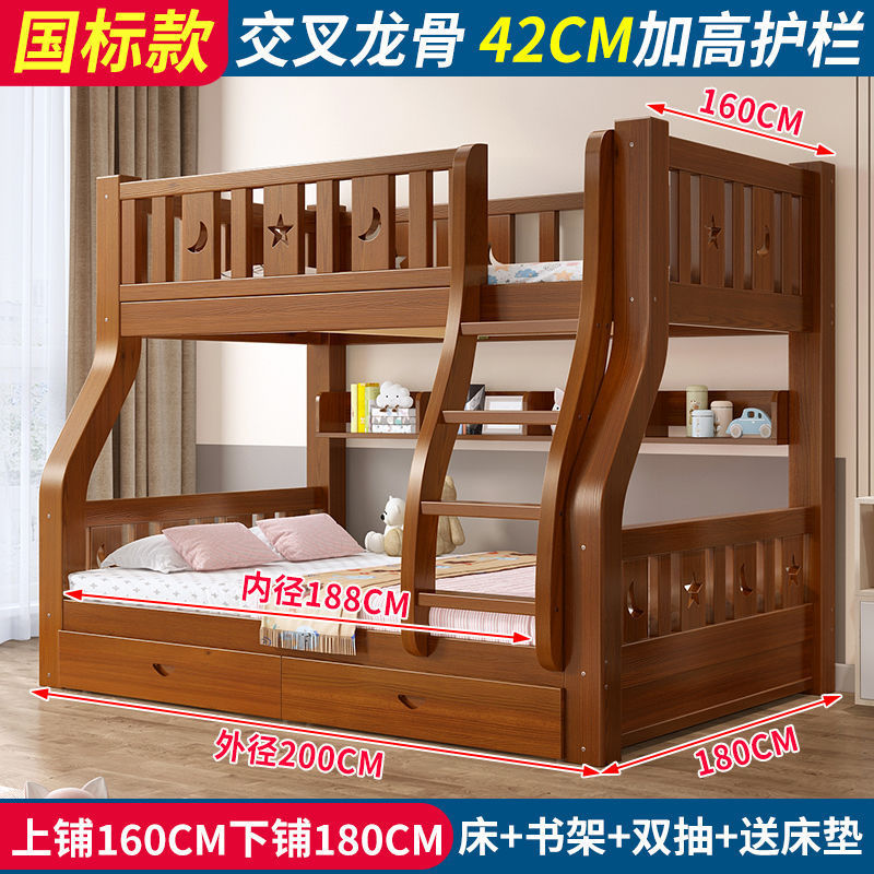 • 브라운 침대 + 더블 서랍 + 매트리스 - 상단 침대 폭 160cm/하단 침대 180cm (모두 원목)