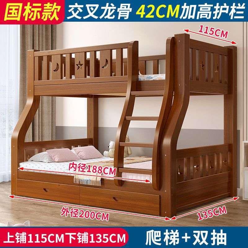 • 브라운 침대 + 더블 서랍 - 상단 침대 폭 115cm/하단 침대 135cm(모두 원목)