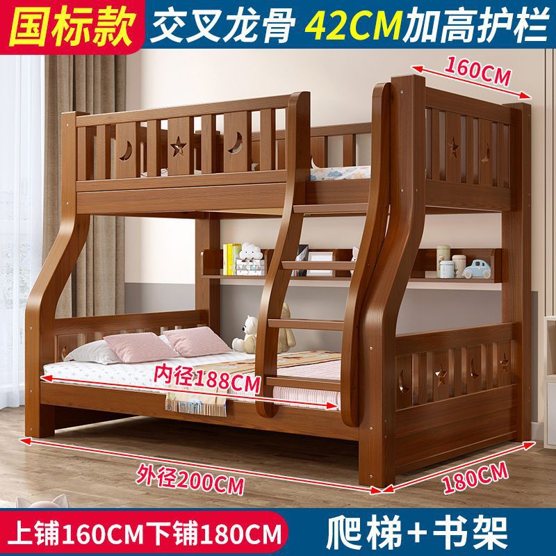• 브라운 침대 + 더블 서랍 - 상단 침대 폭 160cm/하단 침대 180cm(모두 원목)
