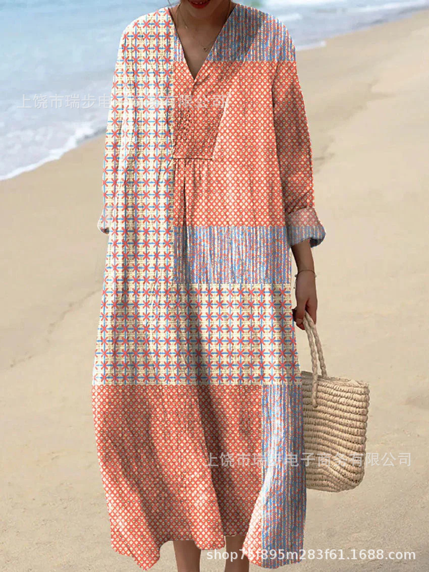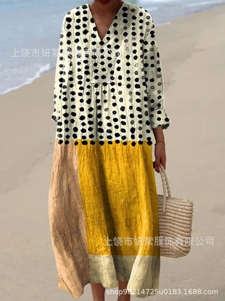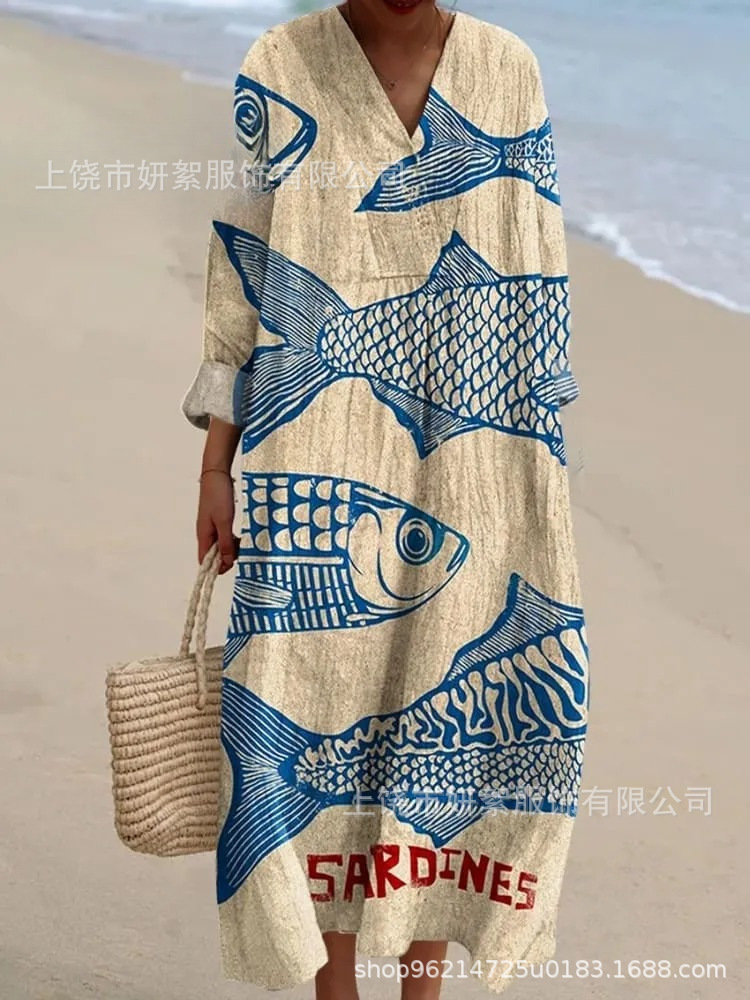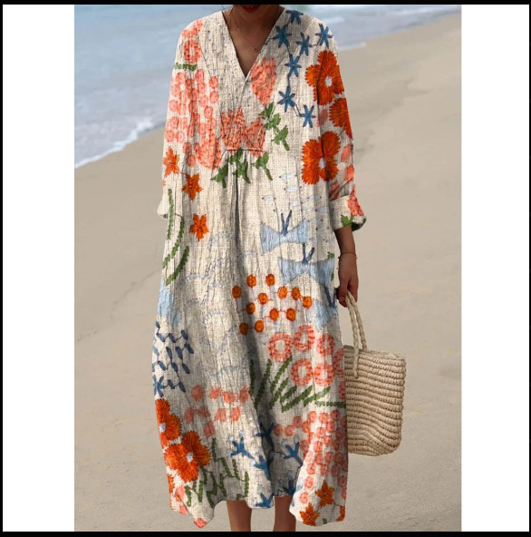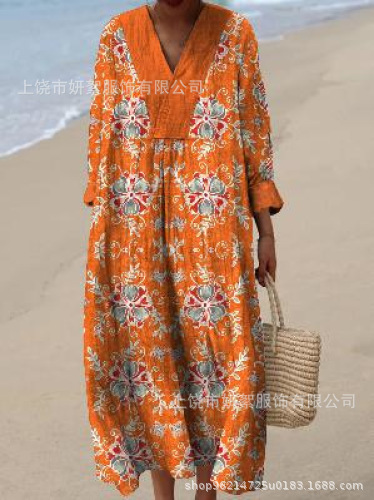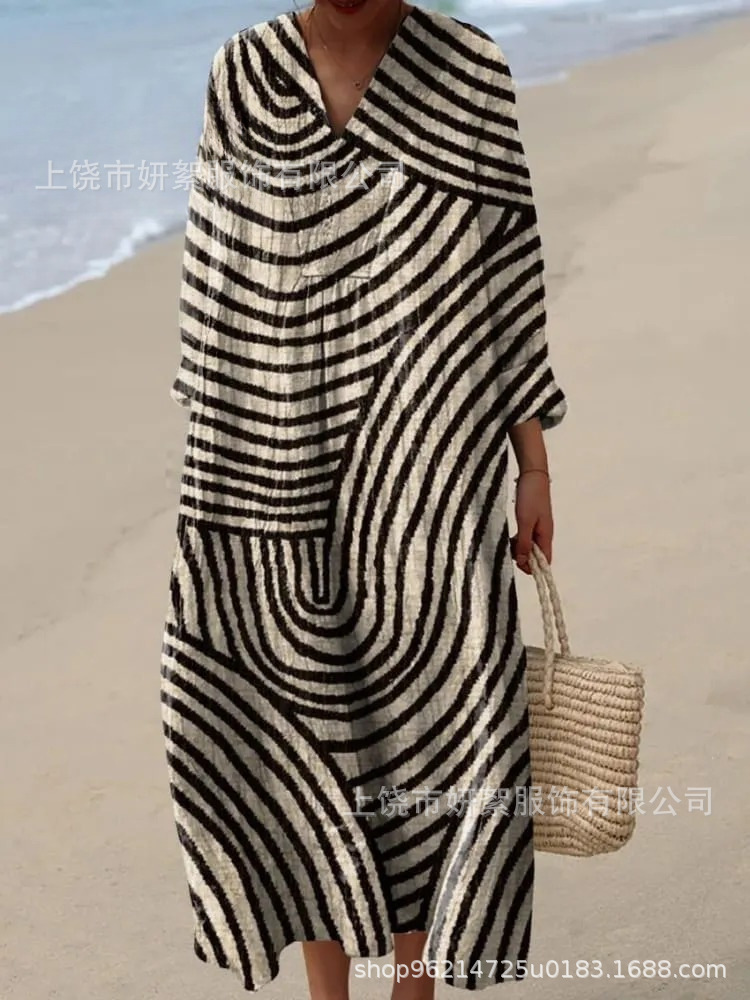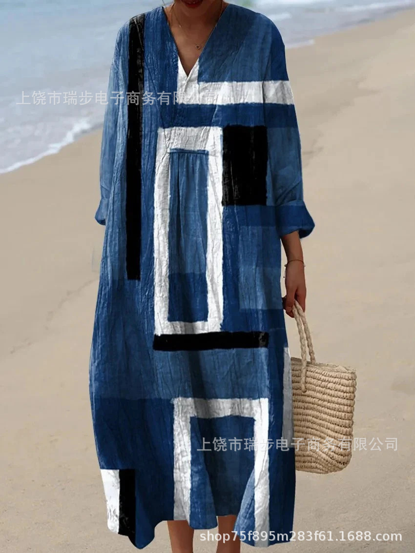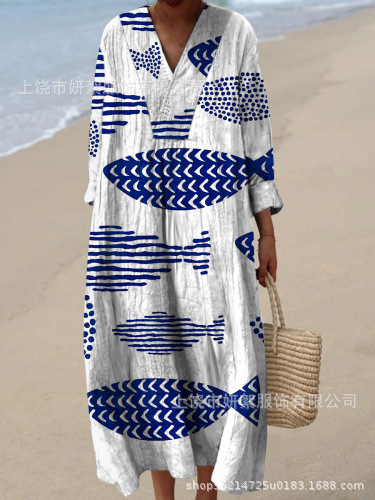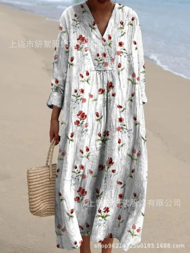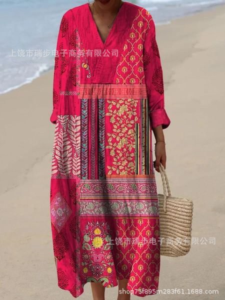2024 국경 새로운 아마존 독립 역 3d 인쇄 라운드 넥 풀오버 패션 인기 바느질 여성 원피스