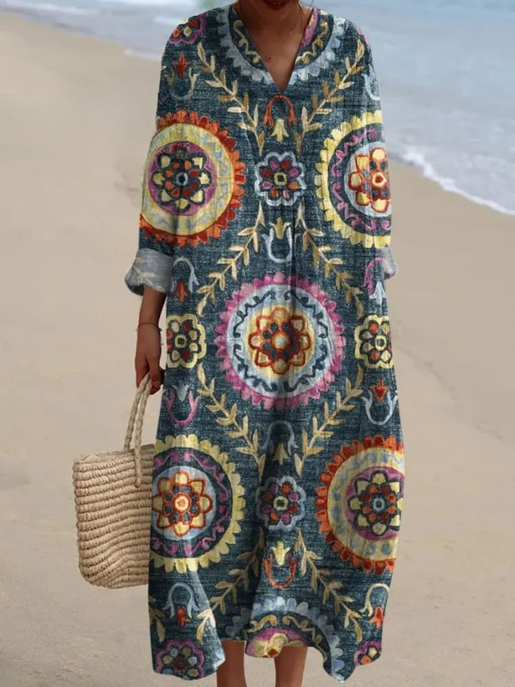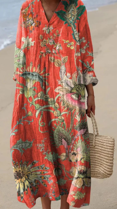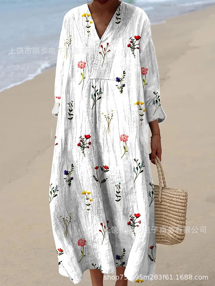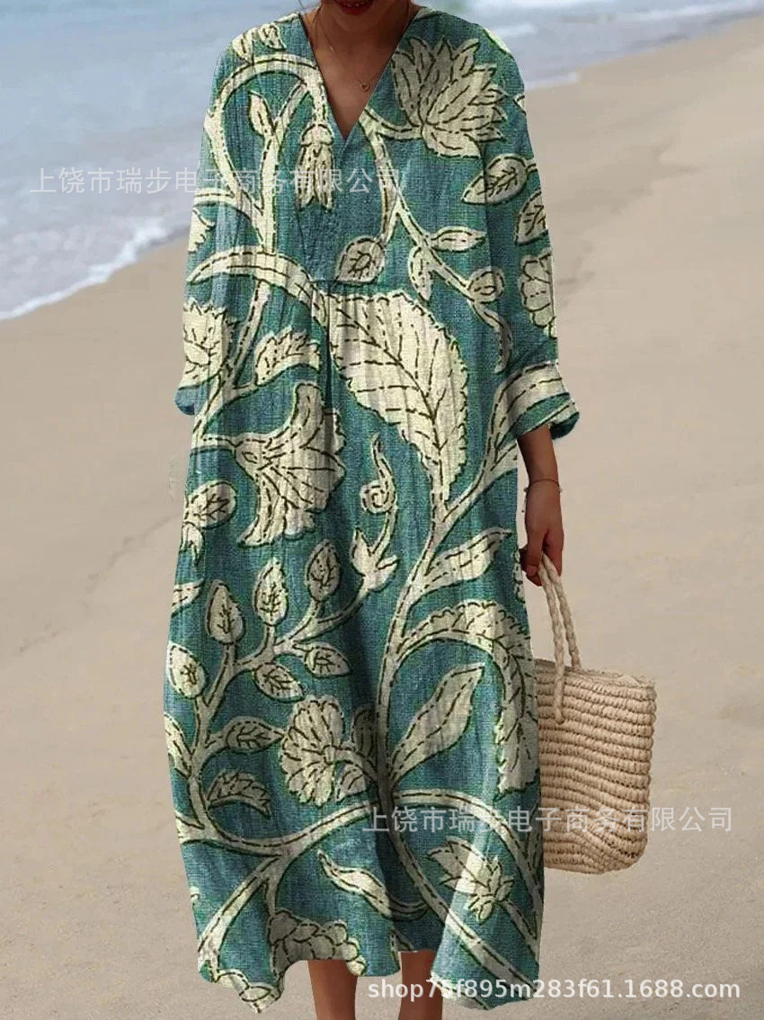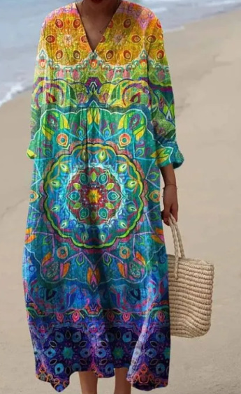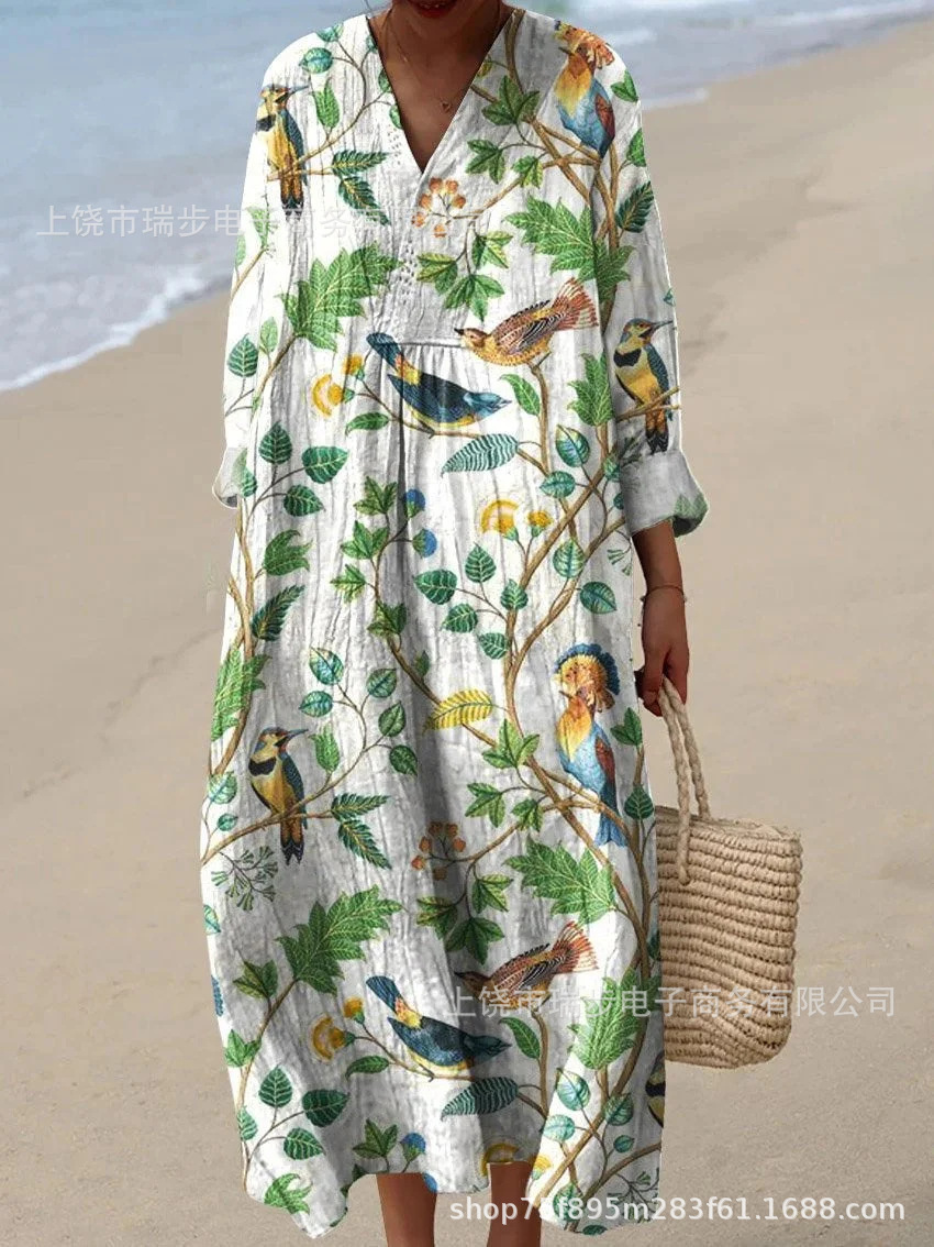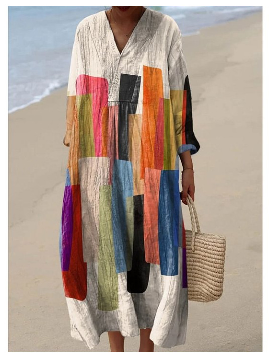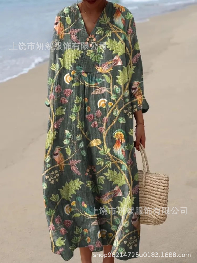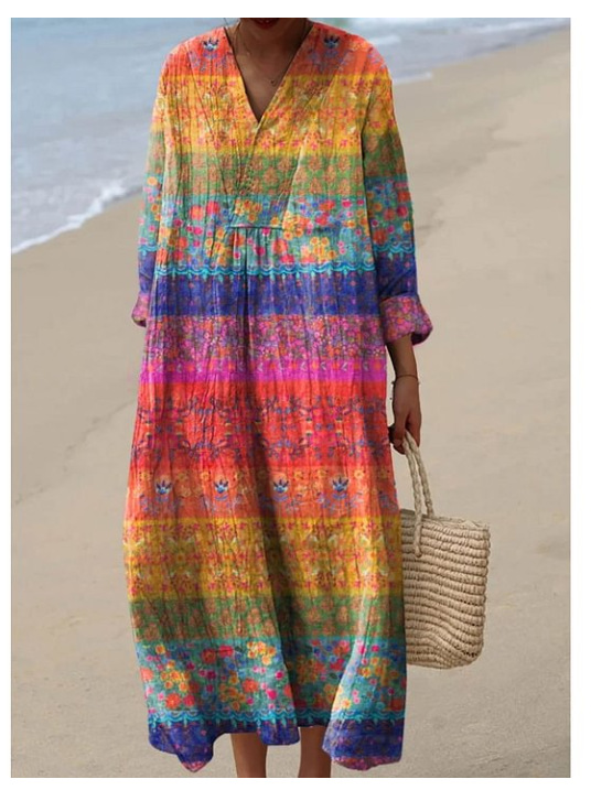 2024 국경 새로운 아마존 독립 역 3d 인쇄 라운드 넥 풀오버 패션 인기 바느질 여성 원피스
