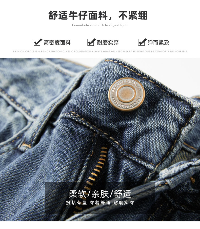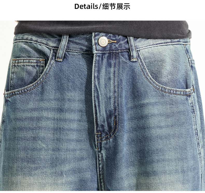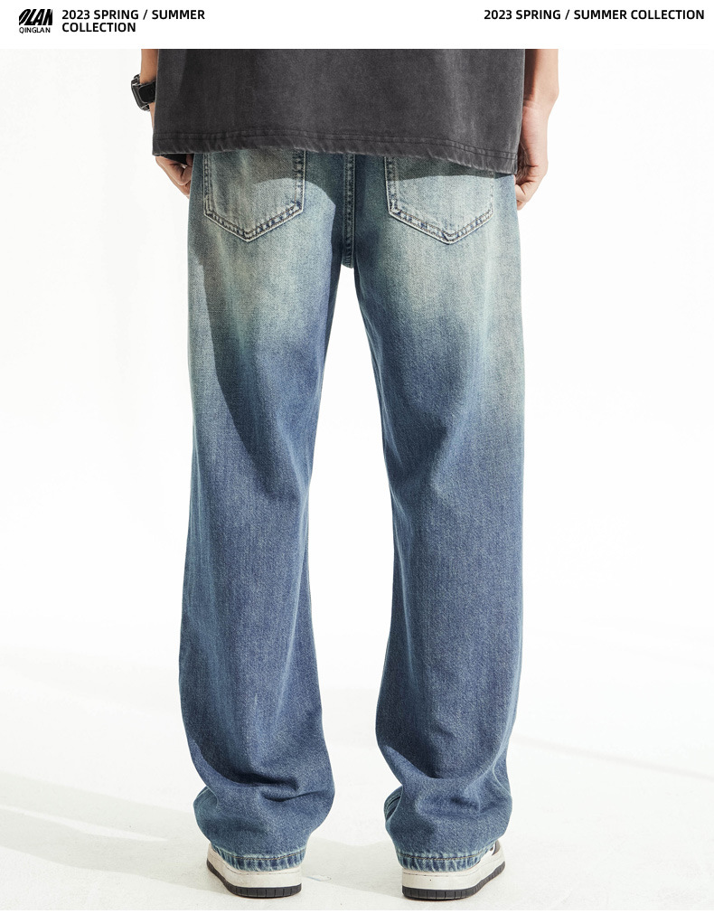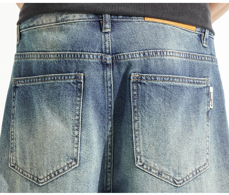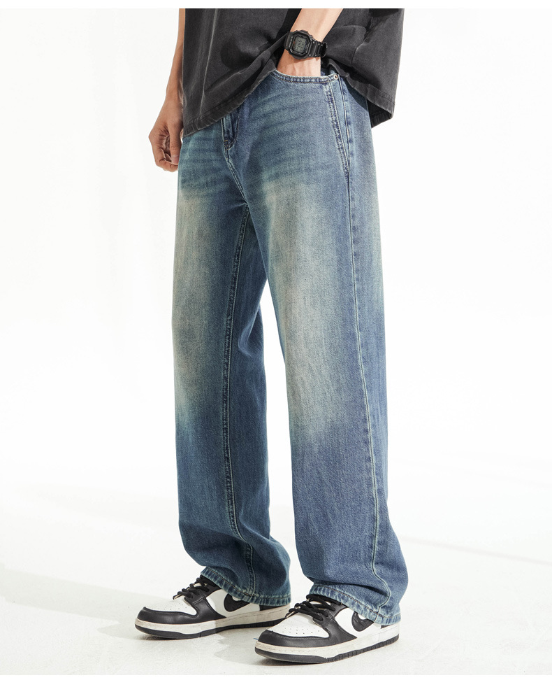 봄과 가을 코튼 느슨한 스트레이트 청바지 남성용 딥 플러스 사이즈 빈티지 세탁 블루 남성용 트렌디 브랜드 캐주얼 바지스토어 가기