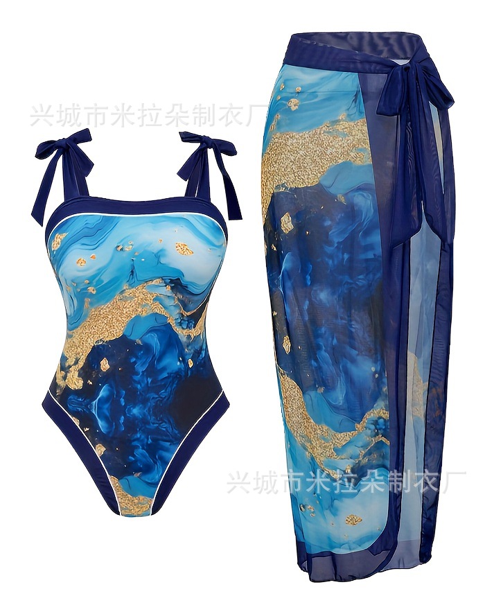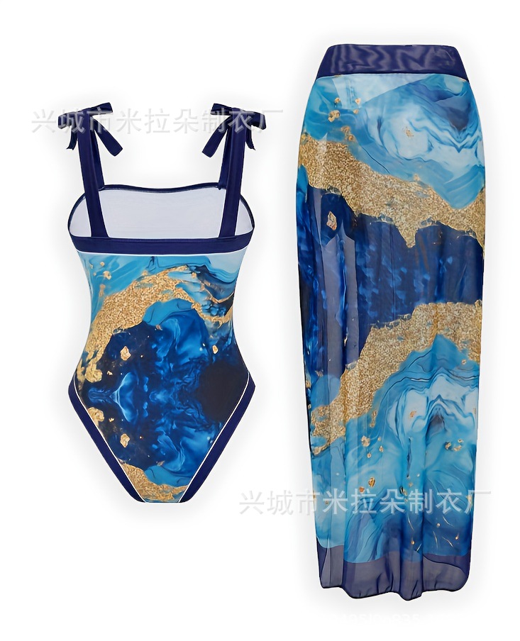 2025 새로운 유럽과 미국의 수영복 여성 인쇄 원피스 비키니 수영복 거즈 스커트 크로스 보더 뜨거운 판매 대외 무역 수영복 휴가