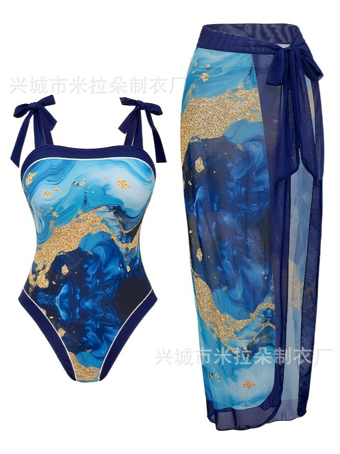 2025 새로운 유럽과 미국의 수영복 여성 인쇄 원피스 비키니 수영복 거즈 스커트 크로스 보더 뜨거운 판매 대외 무역 수영복 휴가스토어 가기