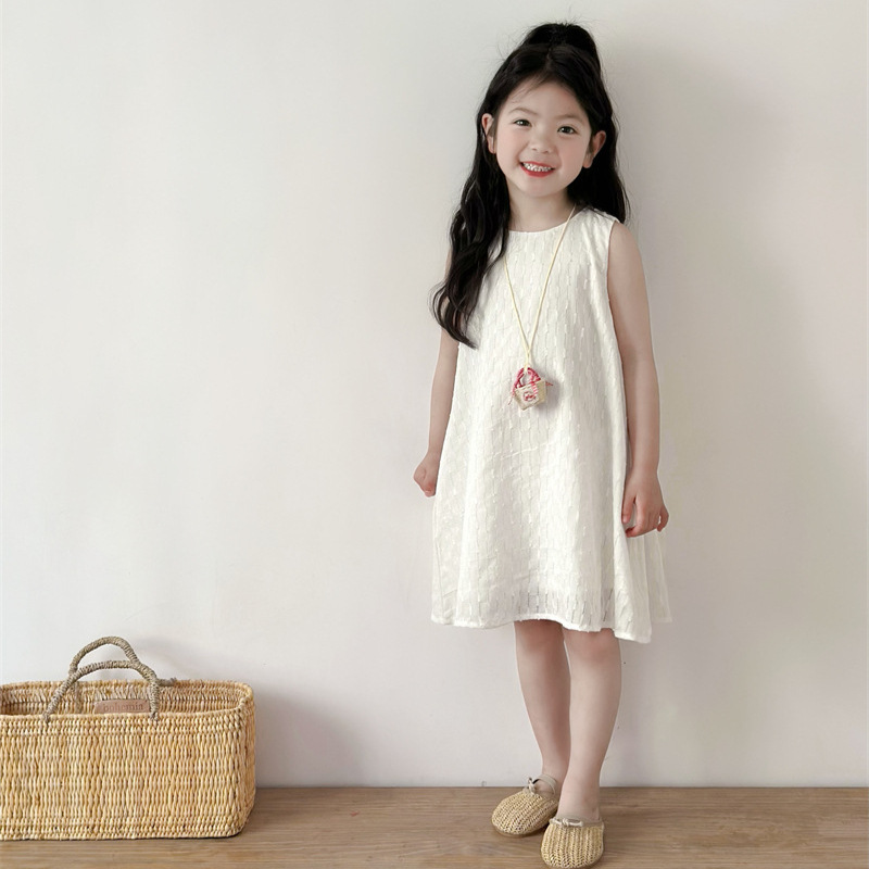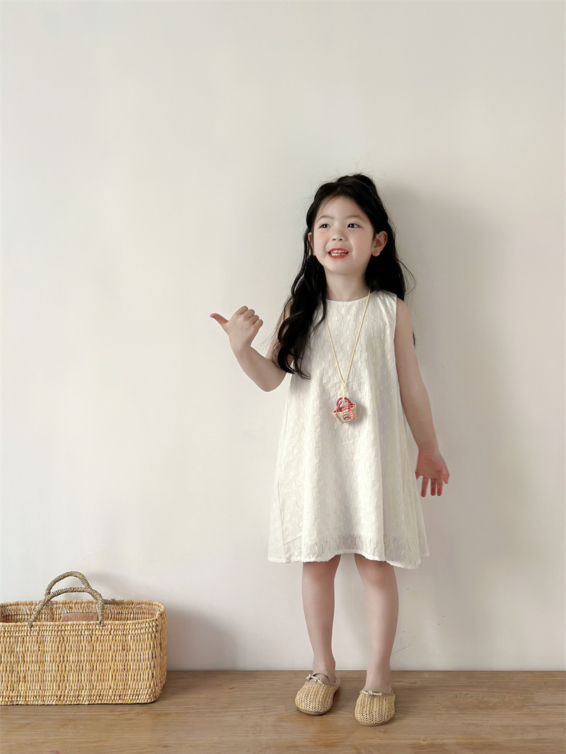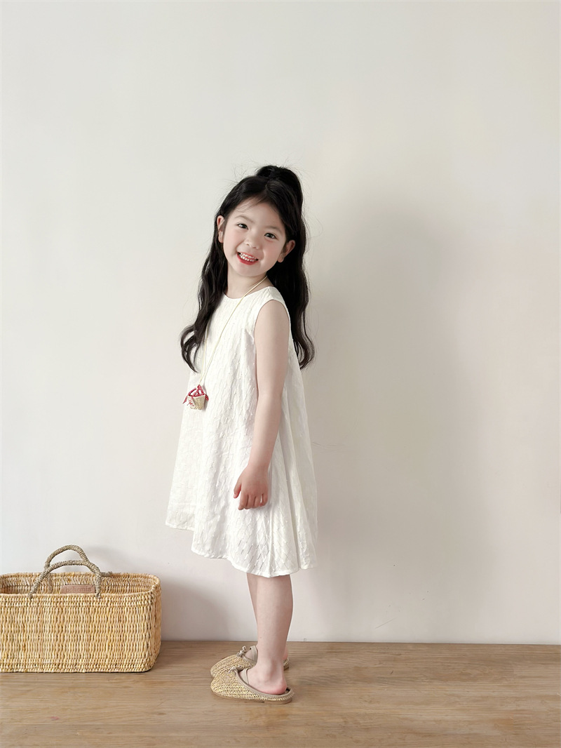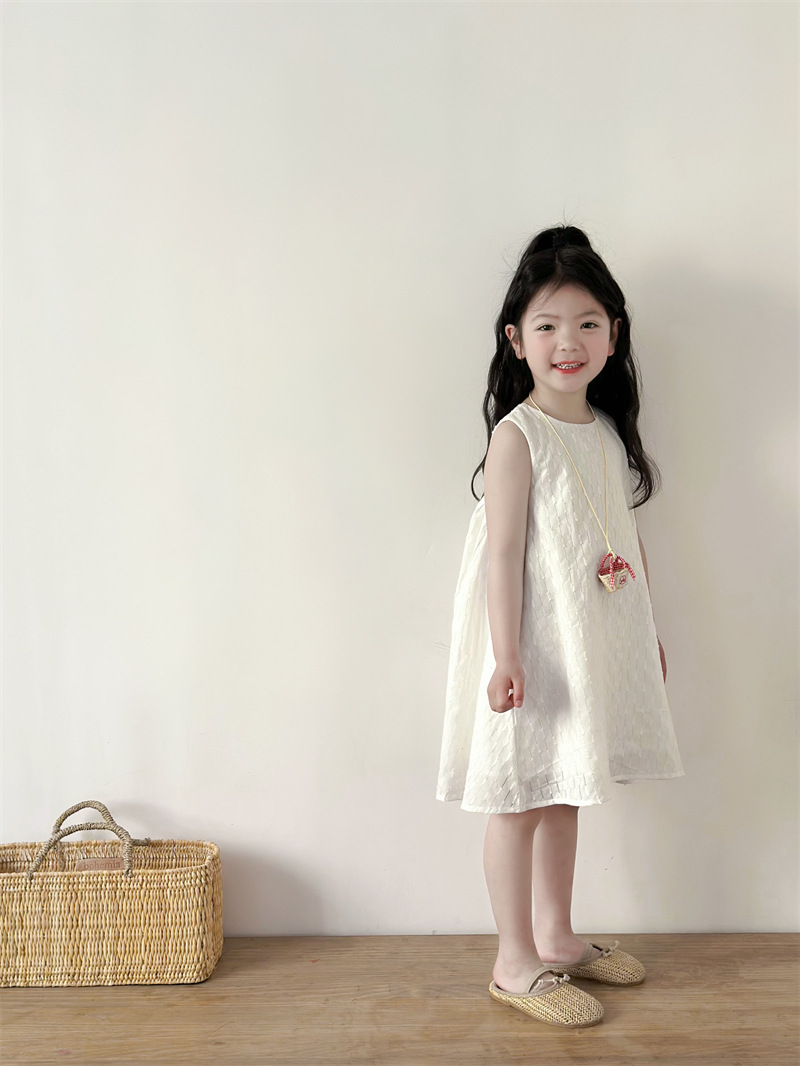2025 어린이 의류 소녀 원피스 여름 어린이 단색 원피스 면화 느슨한 달콤한 어린이 공주 원피스 Q401