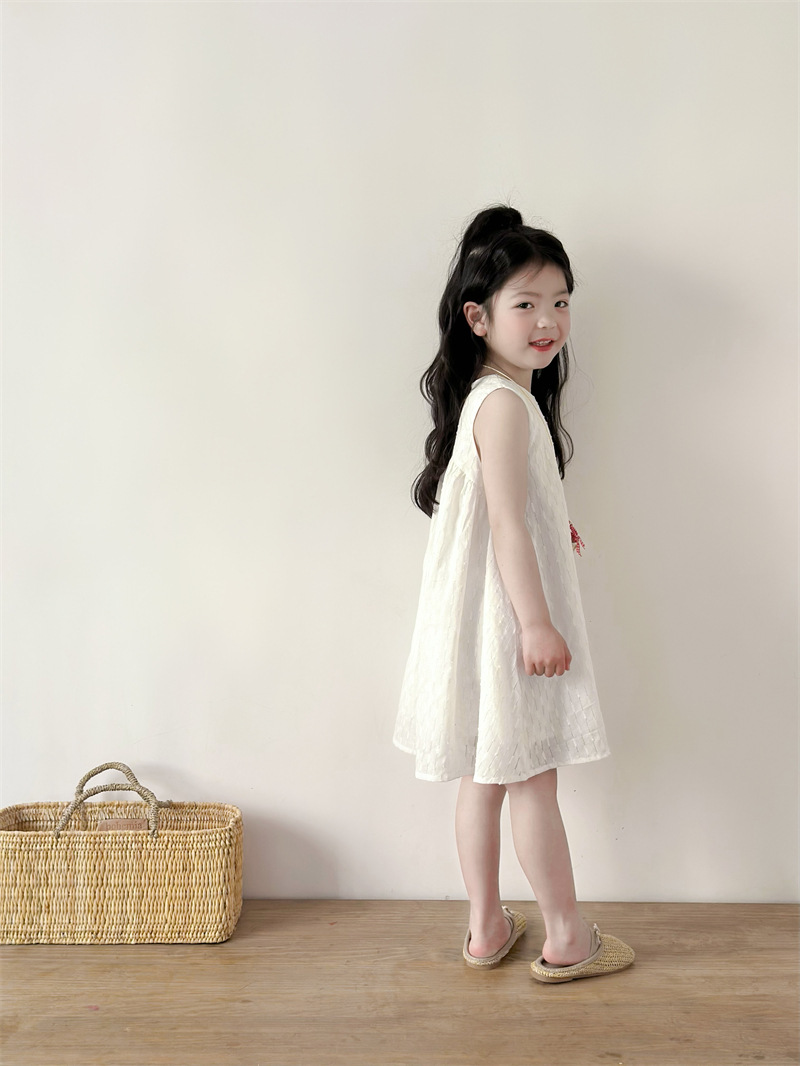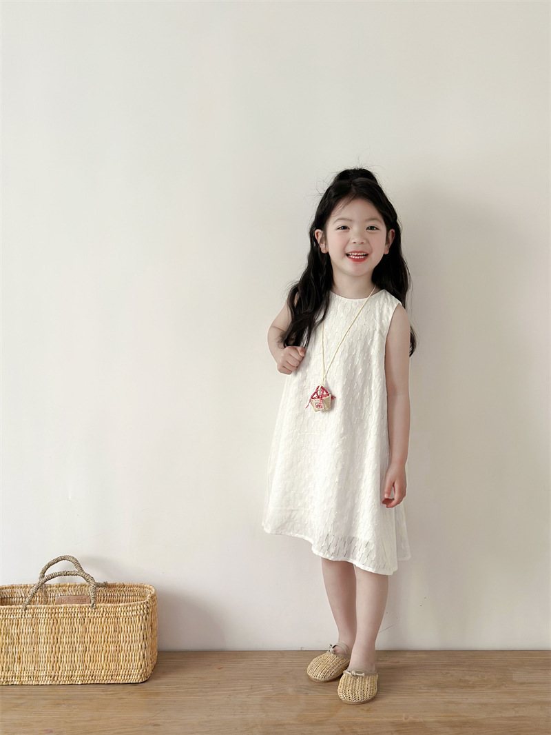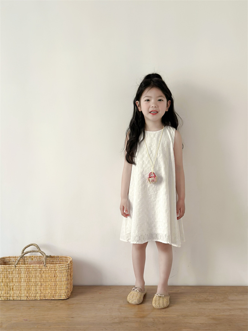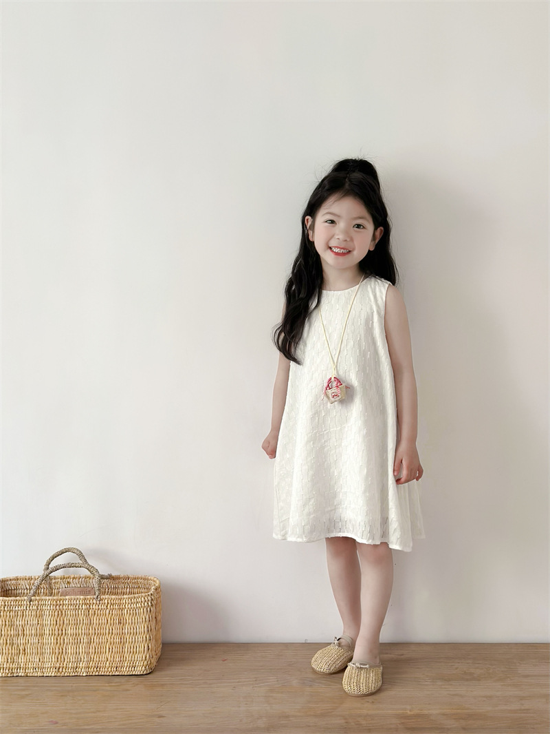 2025 어린이 의류 소녀 원피스 여름 어린이 단색 원피스 면화 느슨한 달콤한 어린이 공주 원피스 Q401