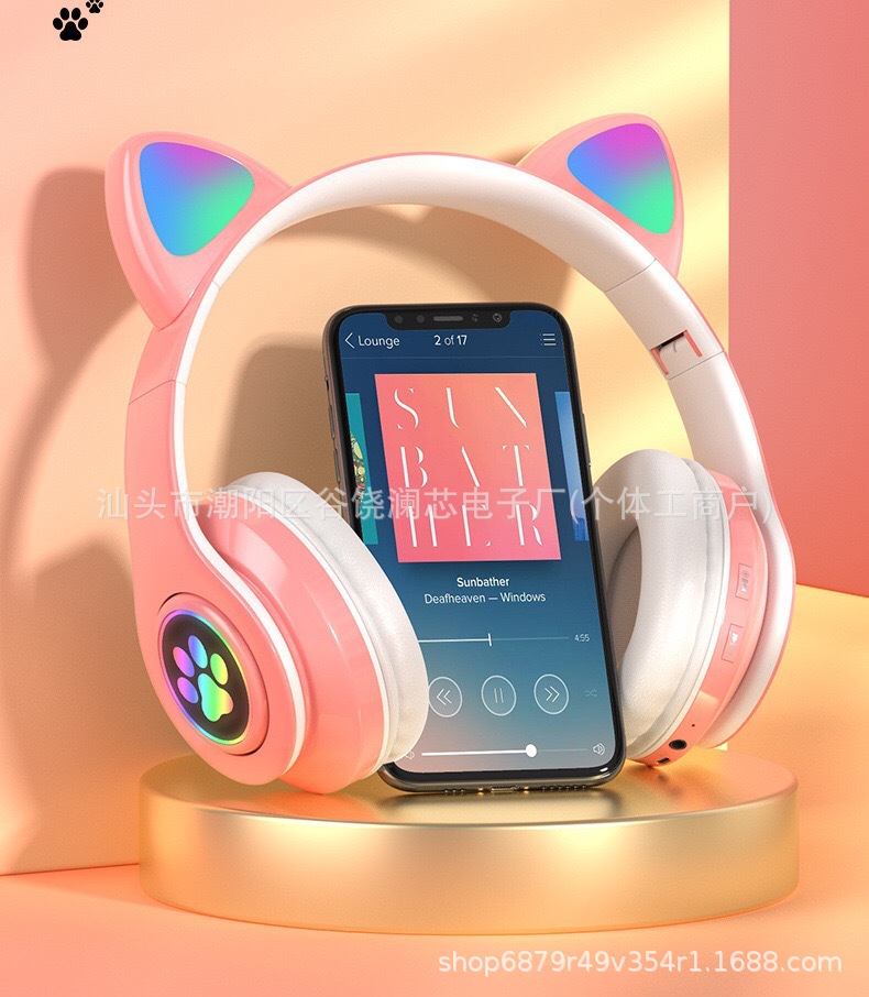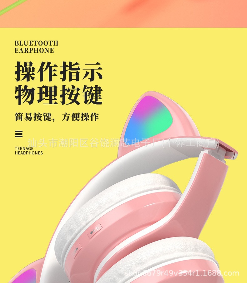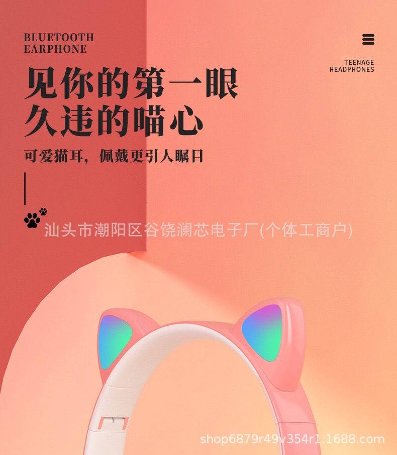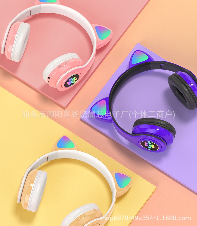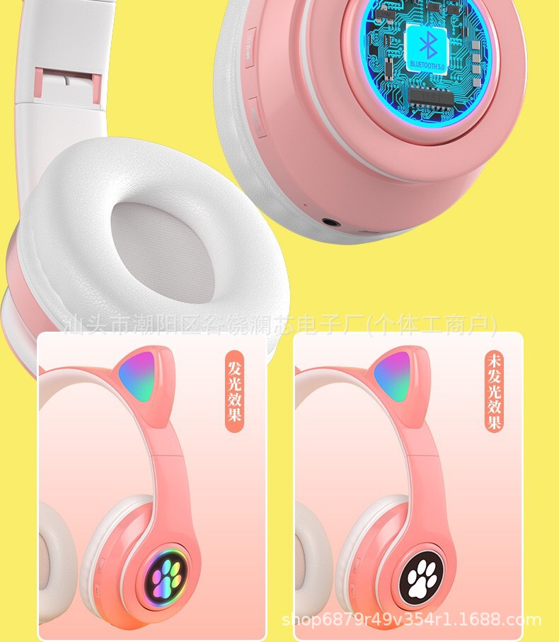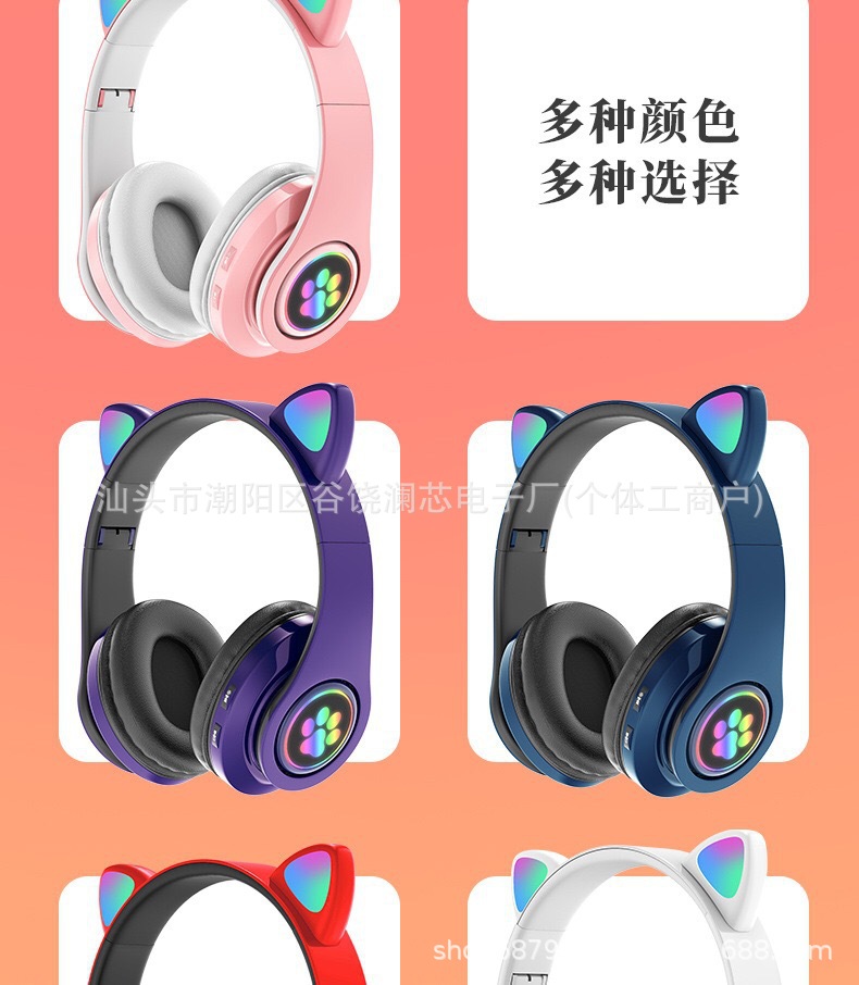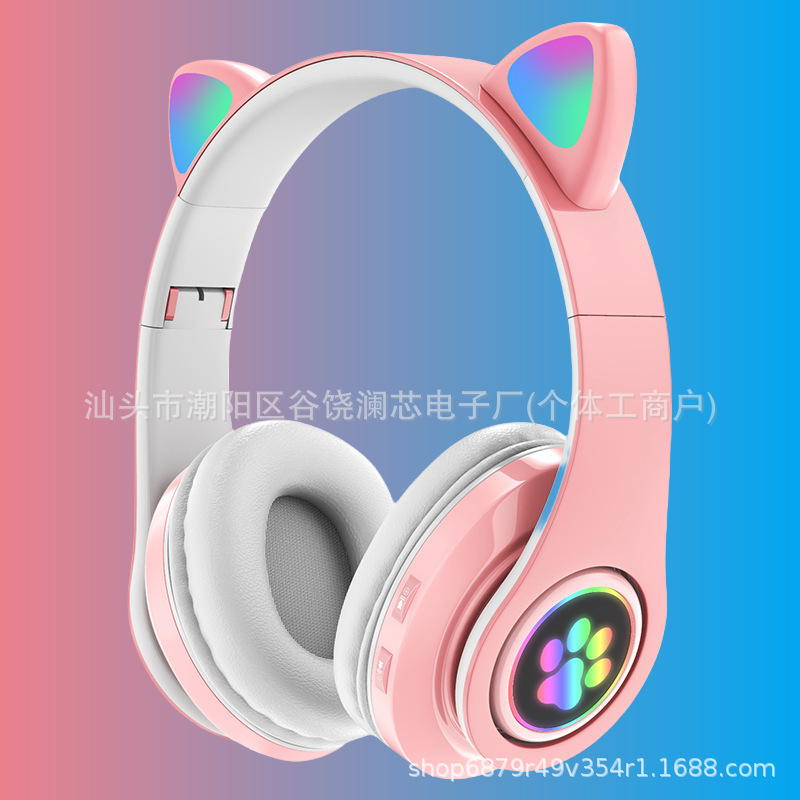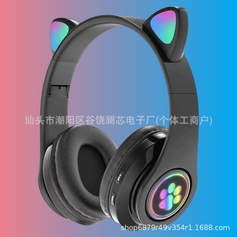 2025 국경 간 새로운 B39M 고양이 귀 블루투스 헤드셋 새로운 빛나는 고양이 귀 헤드 장착형 무선 헤드셋 제조 업체스토어 가기