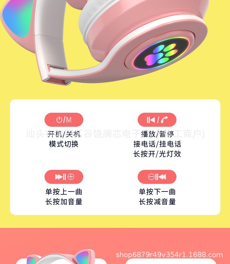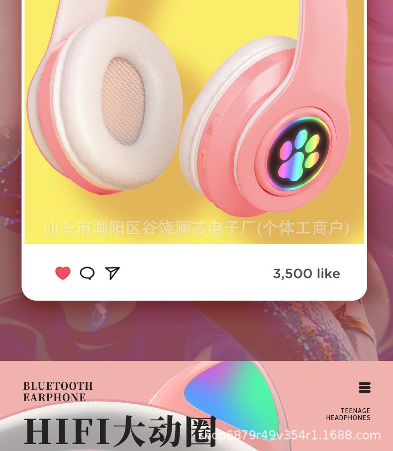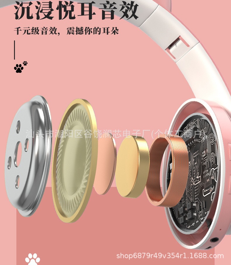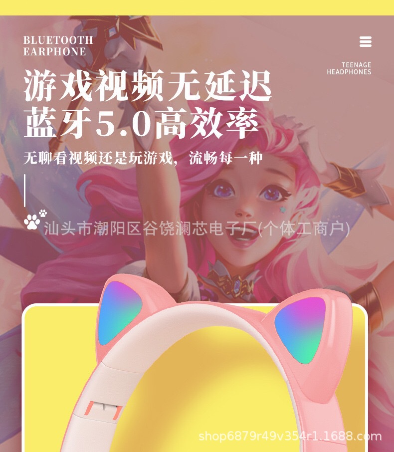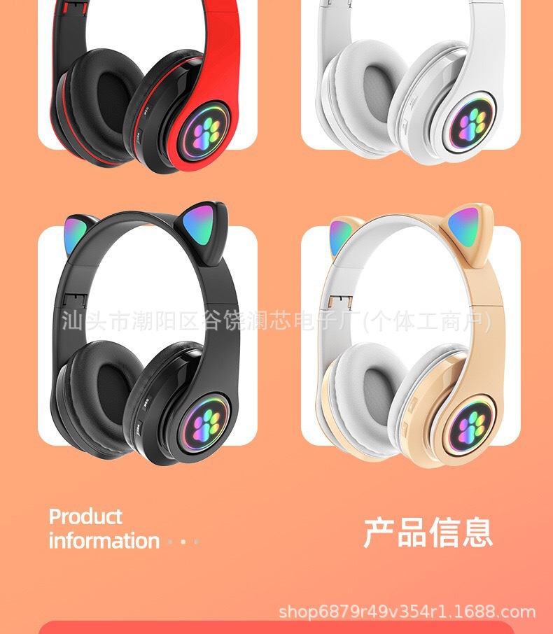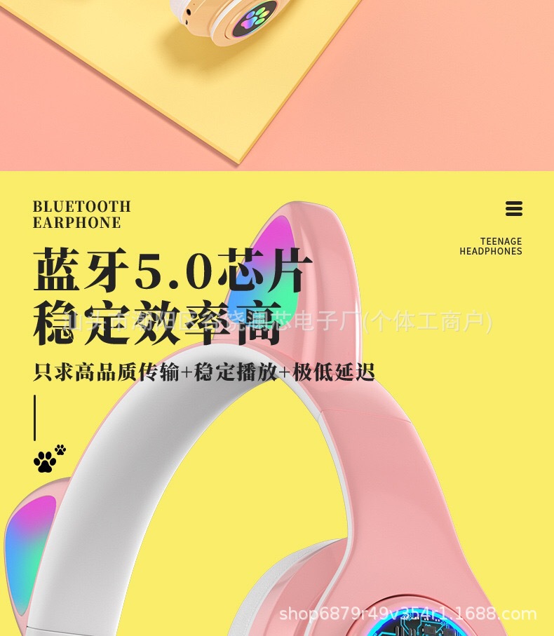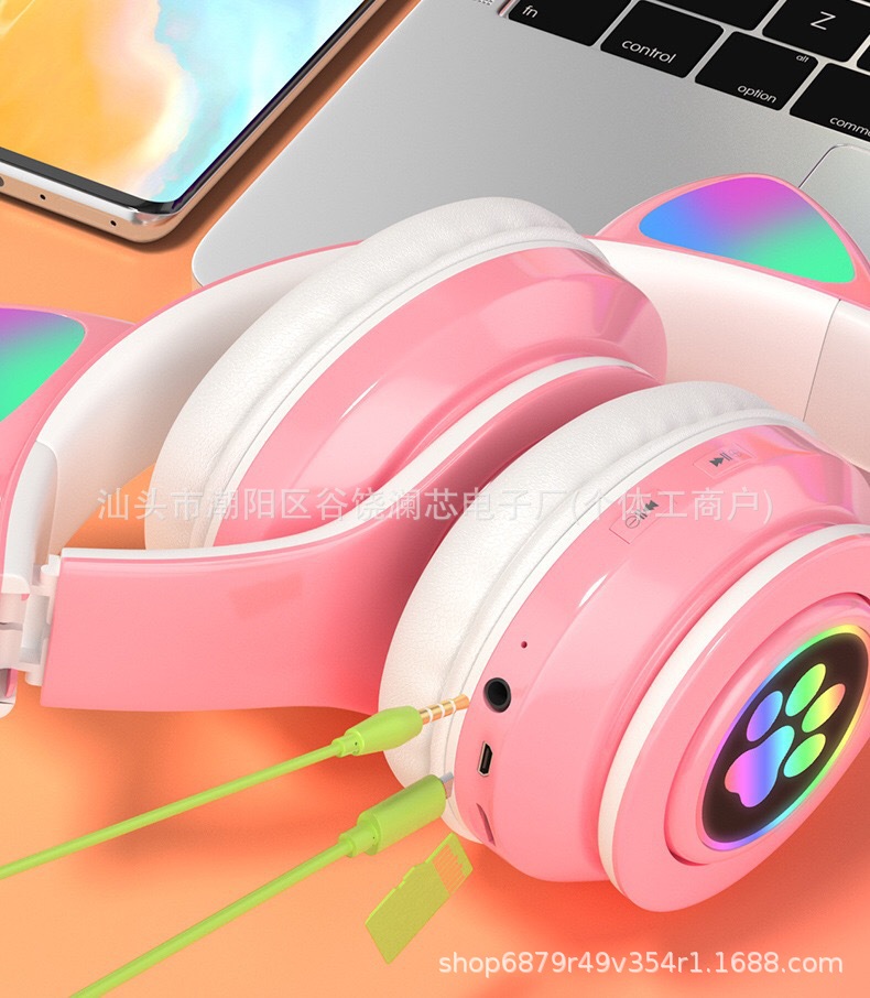 2025 국경 간 새로운 B39M 고양이 귀 블루투스 헤드셋 새로운 빛나는 고양이 귀 헤드 장착형 무선 헤드셋 제조 업체스토어 가기
