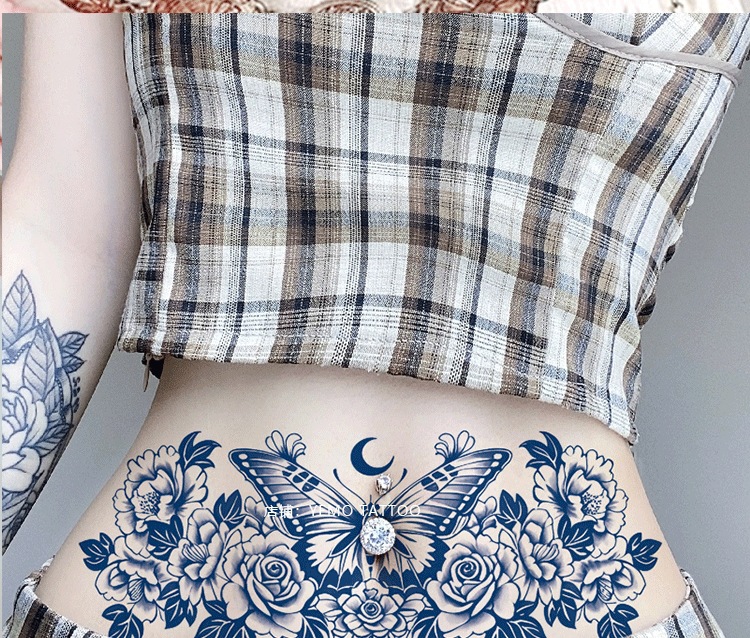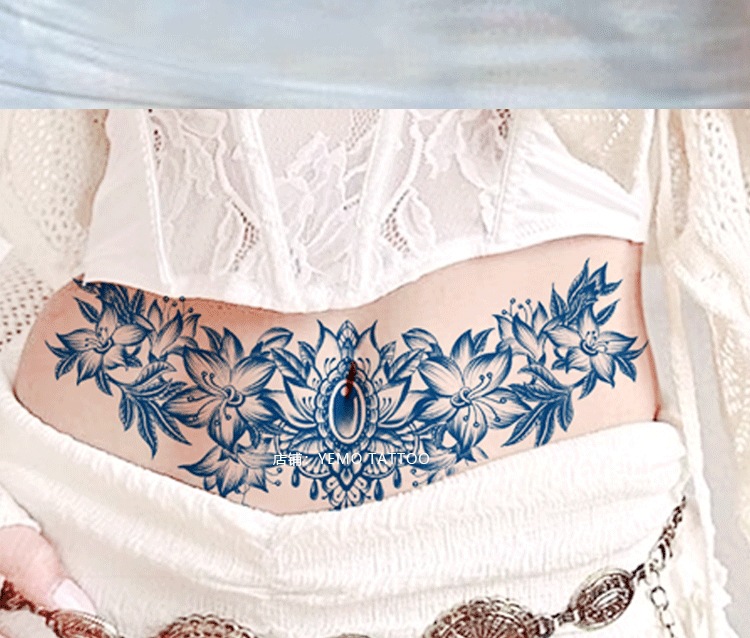 허브 문신 스티커 방수 오래 지속되는 여성 허리 커버 임신 줄무늬 가슴 비 반사 커버 흉터 반 대형 그림스토어 가기