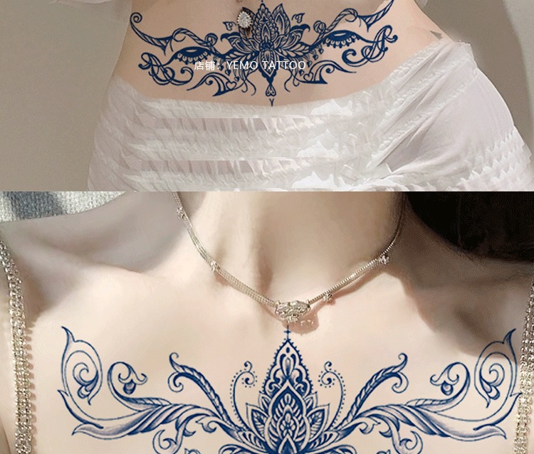 허브 문신 스티커 방수 오래 지속되는 여성 허리 커버 임신 줄무늬 가슴 비 반사 커버 흉터 반 대형 그림