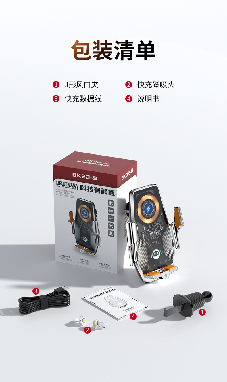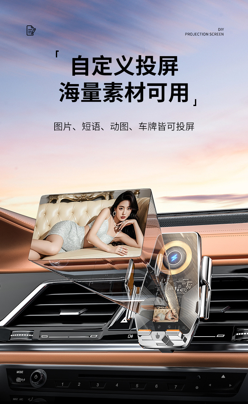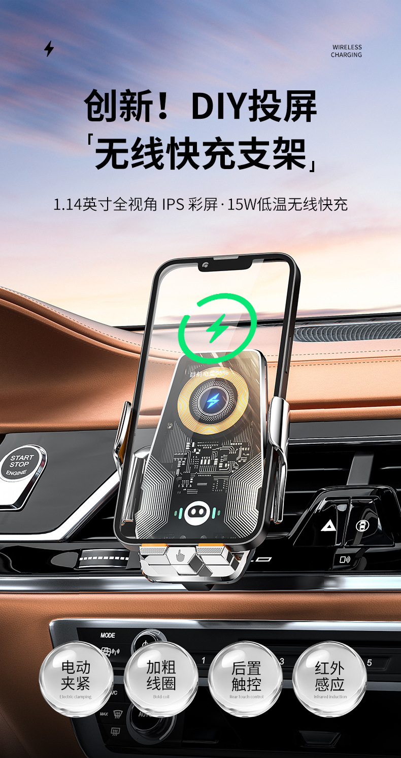 소스 공장 자동차 휴대 전화 브래킷 적외선 자동 개폐 15W 무선 충전 컬러 로고 자동차 용품스토어 가기