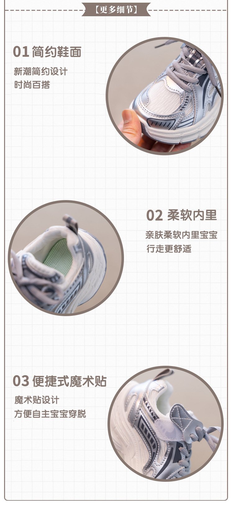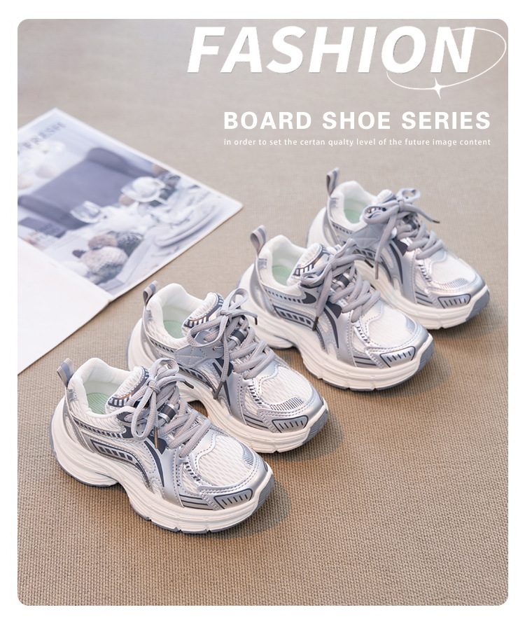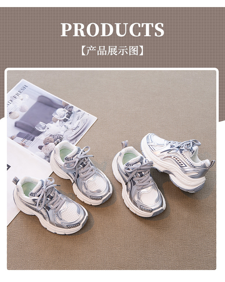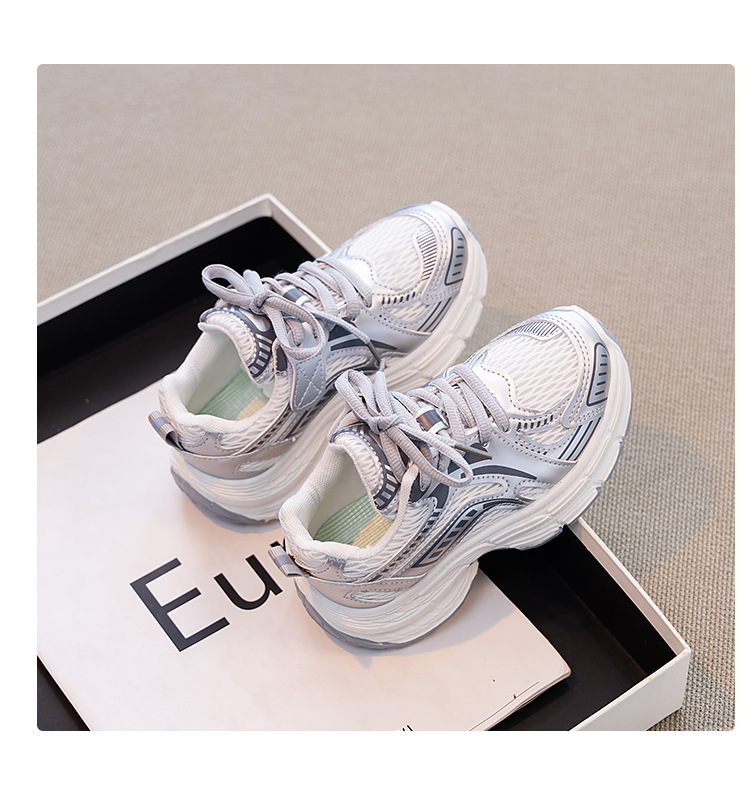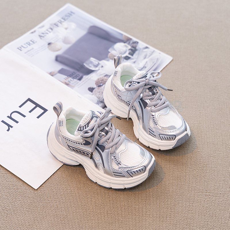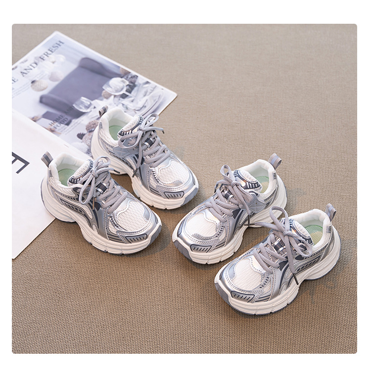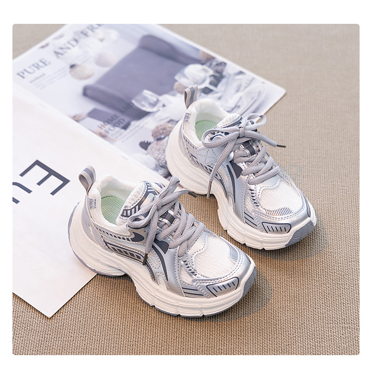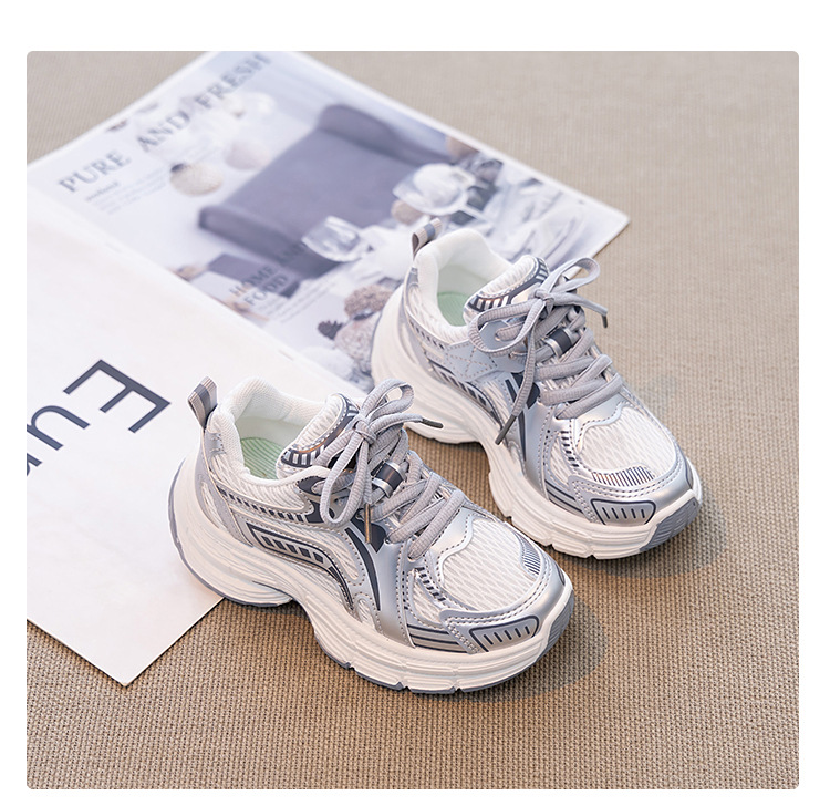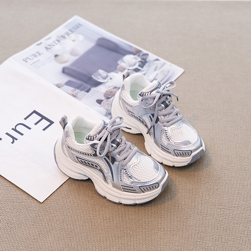 세련되고 통기성이 뛰어난 어린이 아빠 신발 2025 봄 여름 새로운 경량 부드러운 밑창 소년 신발 소녀 실버 운동화스토어 가기
