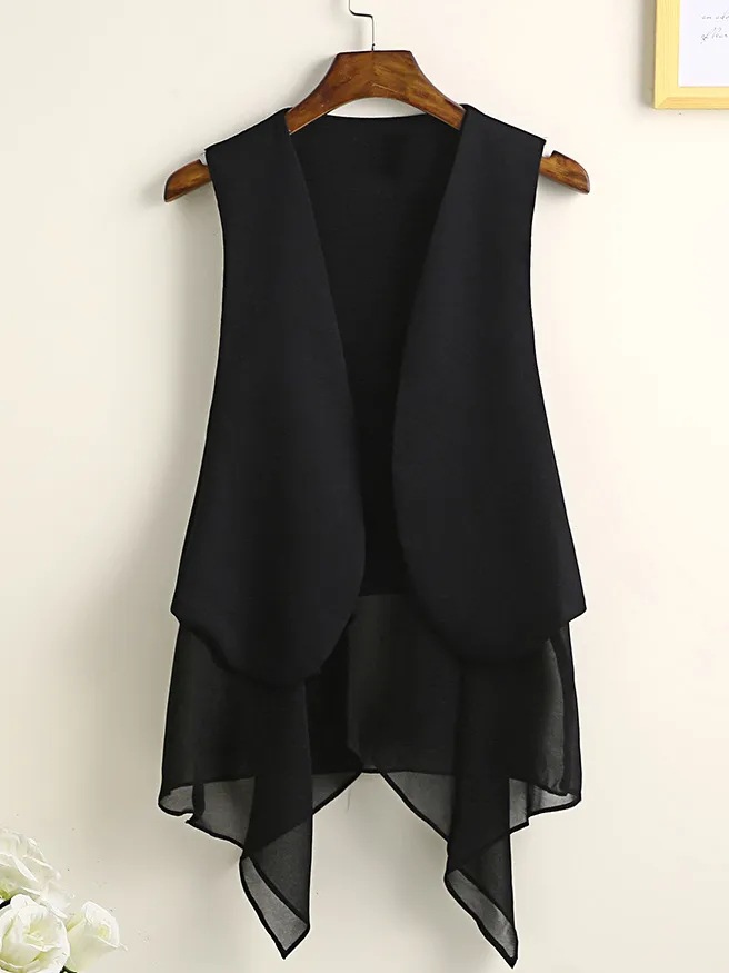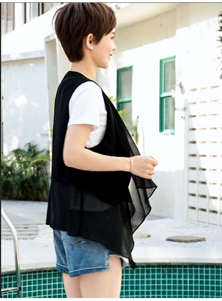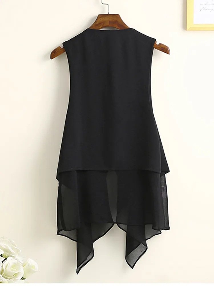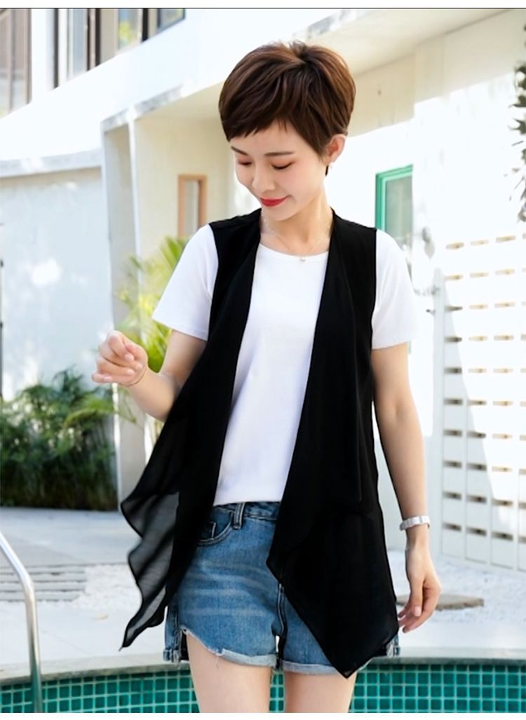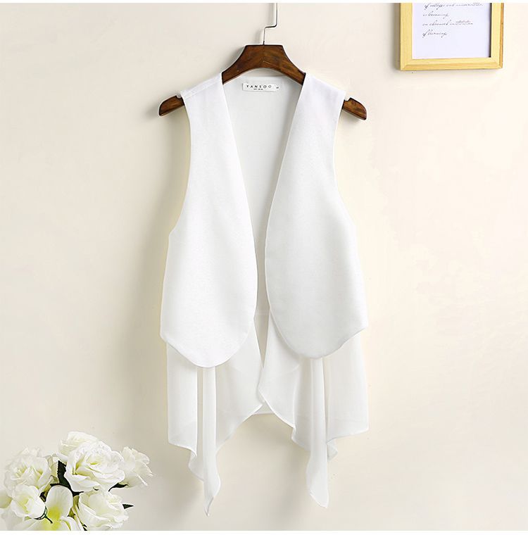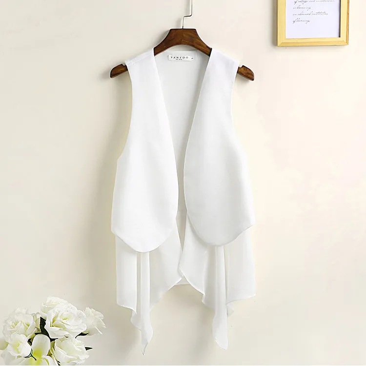 8872 봄 여름 불규칙한 쉬폰 조끼 여성 중간 길이 얇은 한국 스타일 민소매 조끼 새로운 패션
