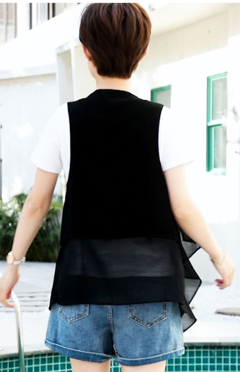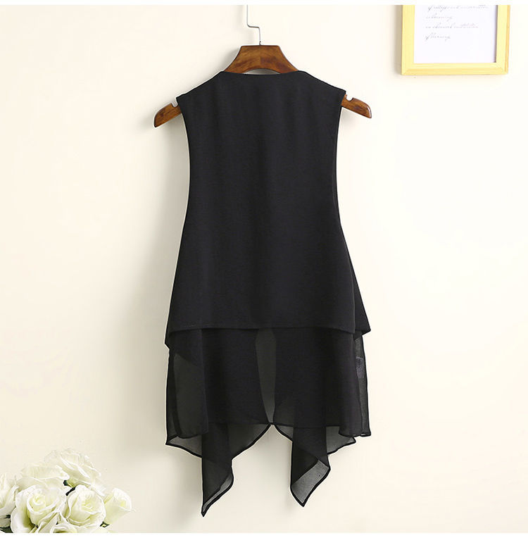 8872 봄 여름 불규칙한 쉬폰 조끼 여성 중간 길이 얇은 한국 스타일 민소매 조끼 새로운 패션스토어 가기