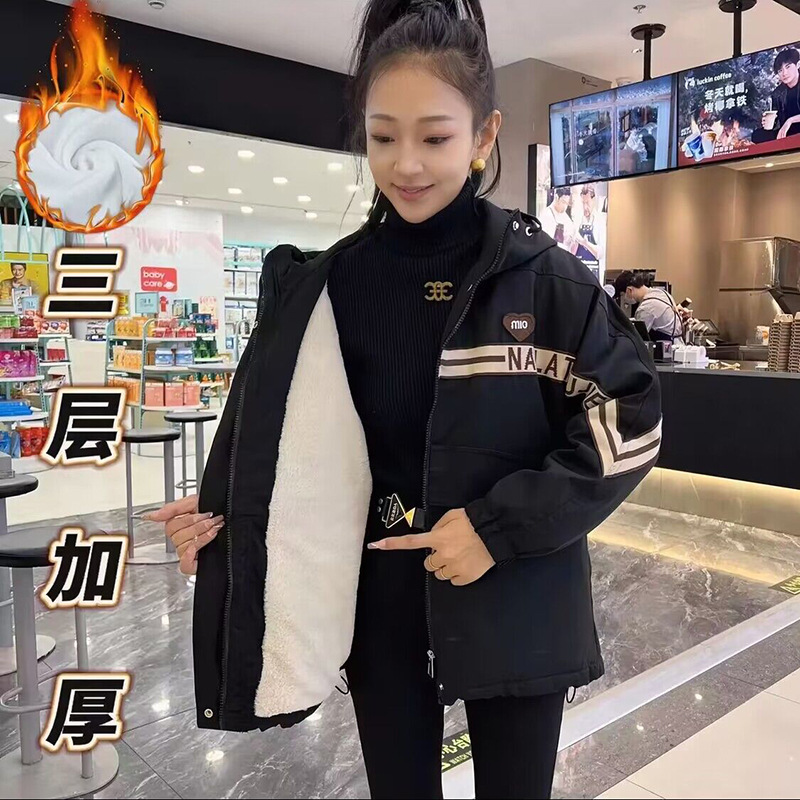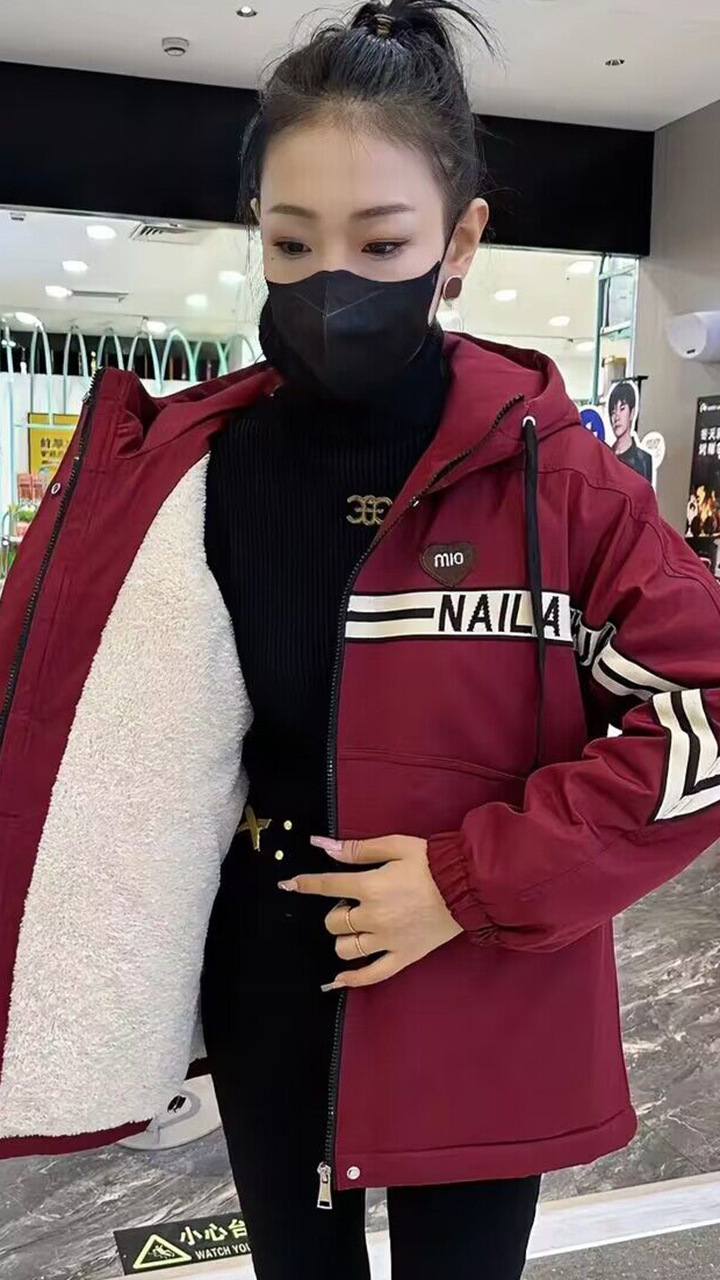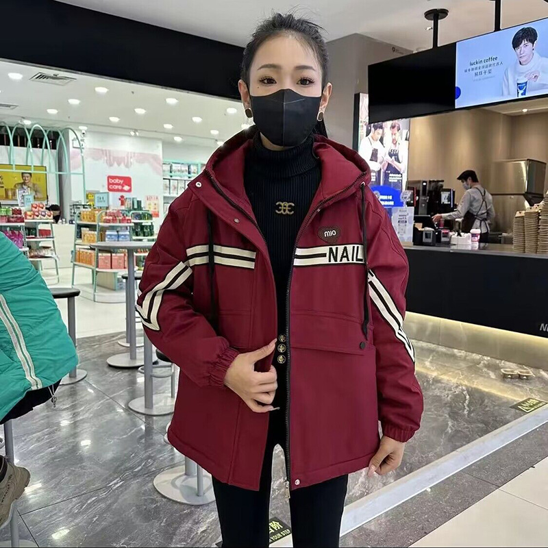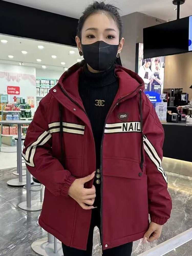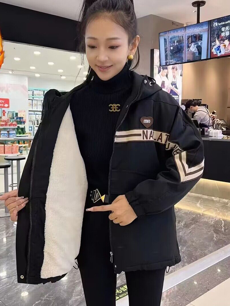 여성을위한 벨벳 두꺼운 재킷 2025 겨울 새로운 한국어 스타일 수 놓은 캐주얼 후드 따뜻한 재킷