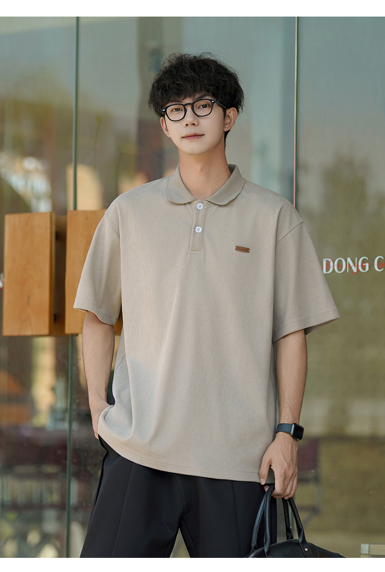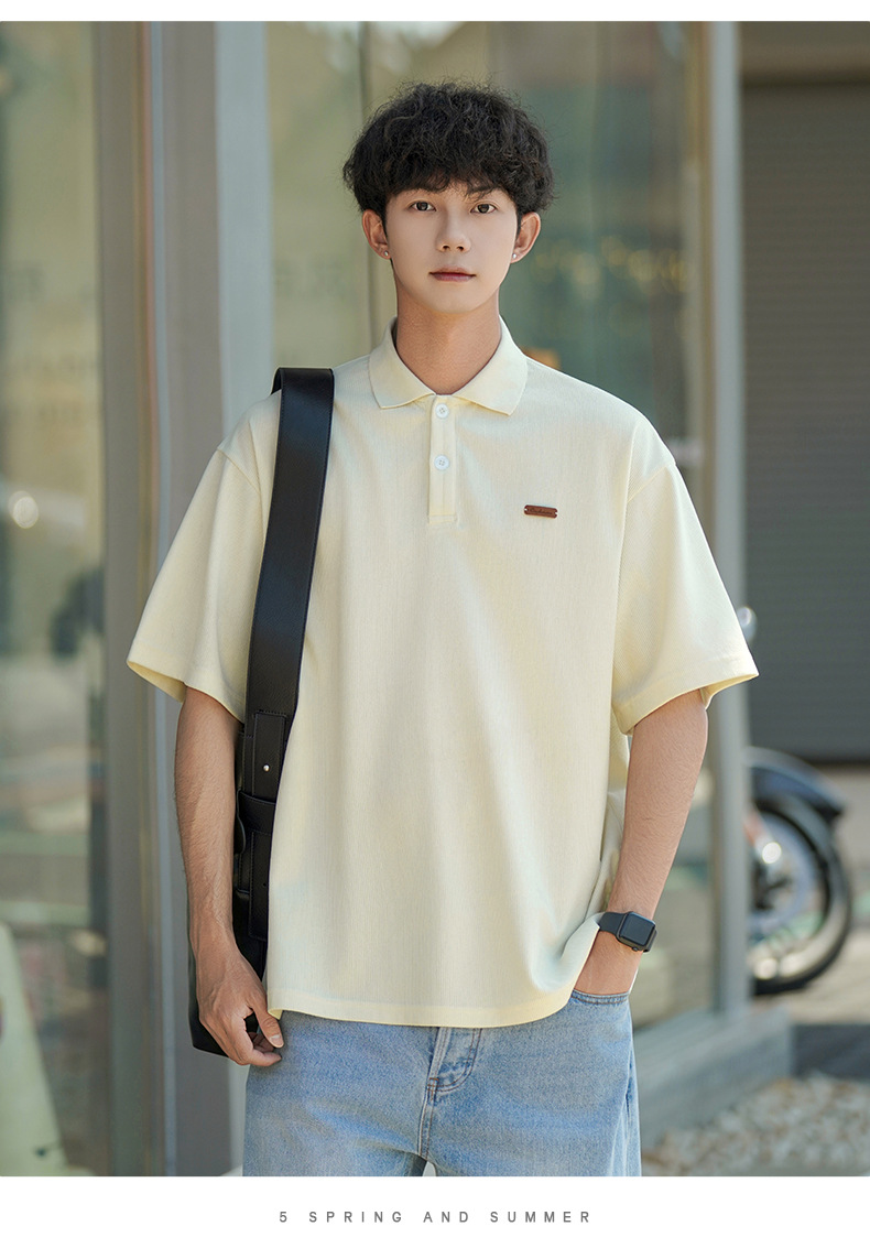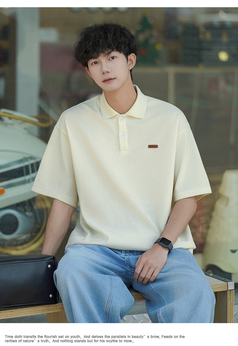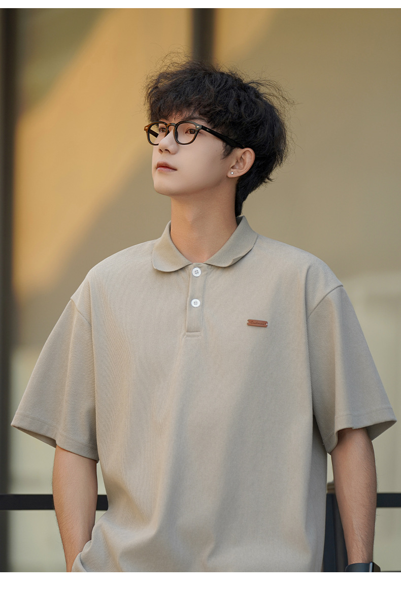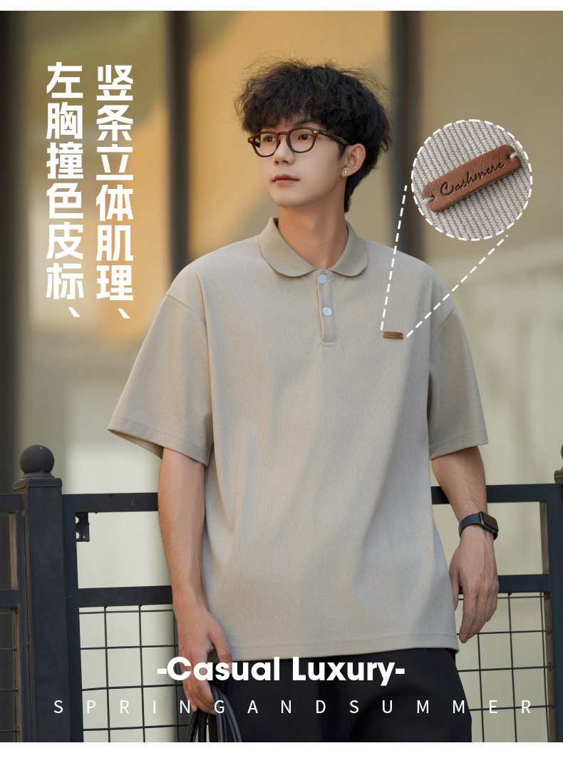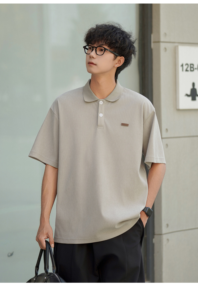 라이트 럭셔리 올드 머니 텍스처 반팔 폴로 셔츠 남자 여름 수직 스트립 질감 반소매 티셔츠 레트로 루즈 트렌디 브랜드 티셔츠스토어 가기