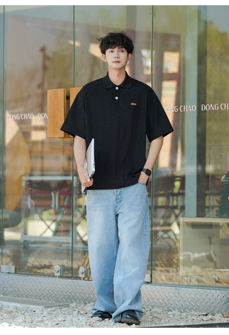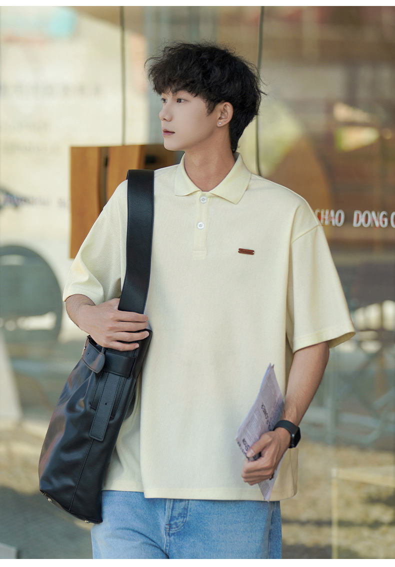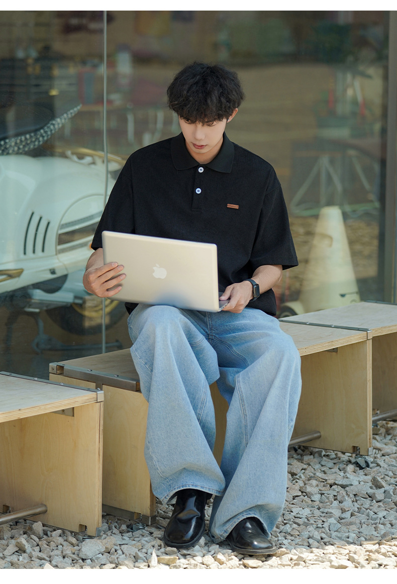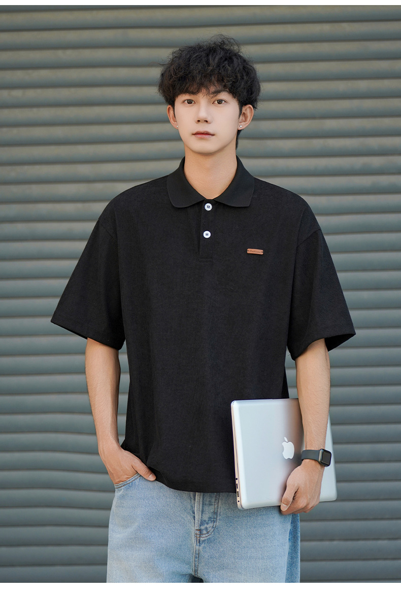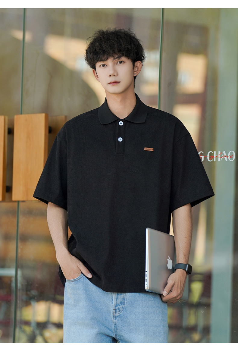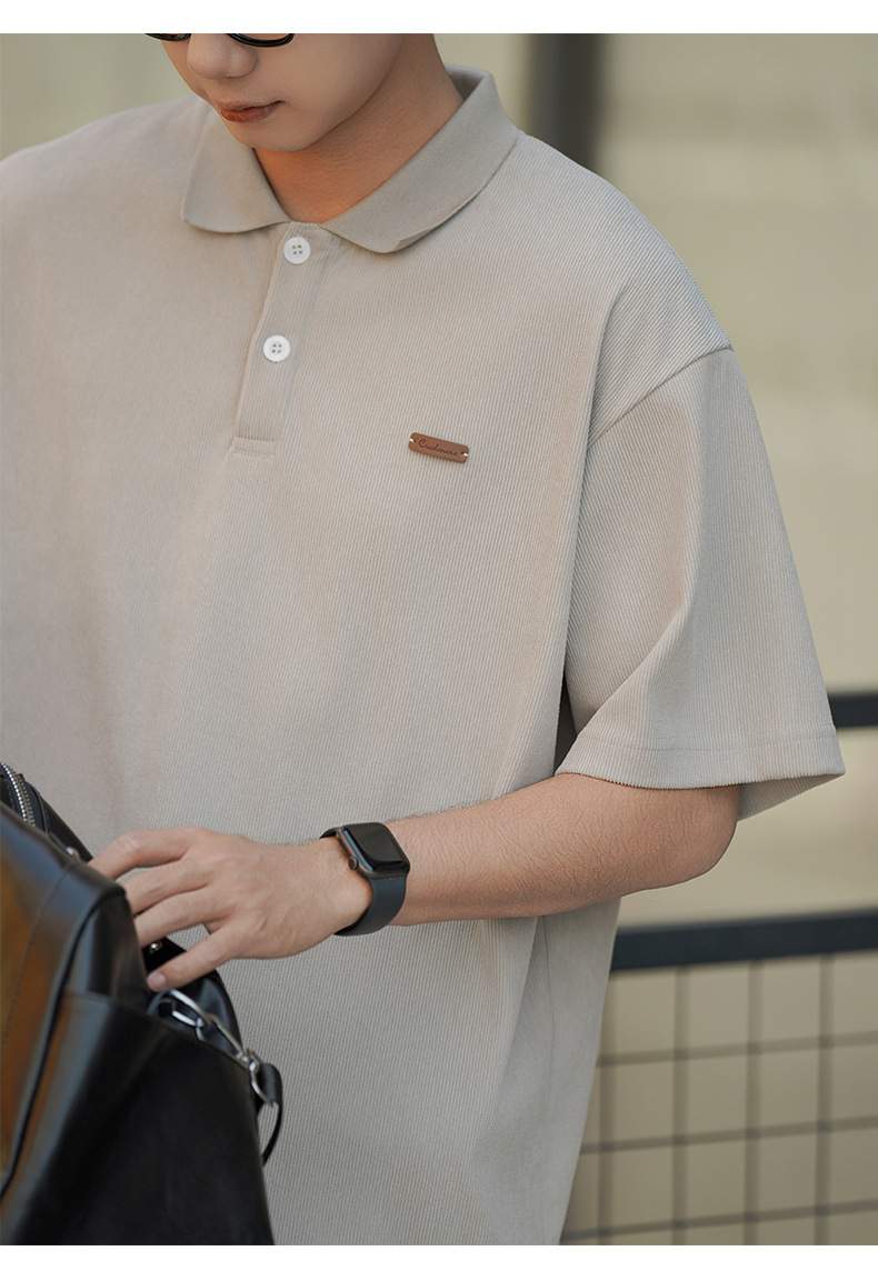 라이트 럭셔리 올드 머니 텍스처 반팔 폴로 셔츠 남자 여름 수직 스트립 질감 반소매 티셔츠 레트로 루즈 트렌디 브랜드 티셔츠스토어 가기