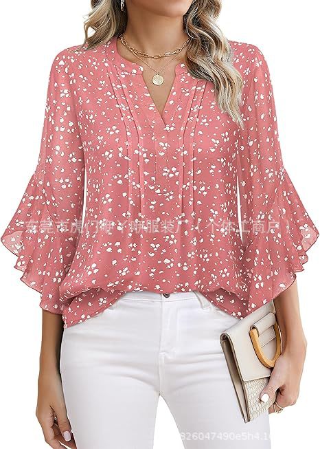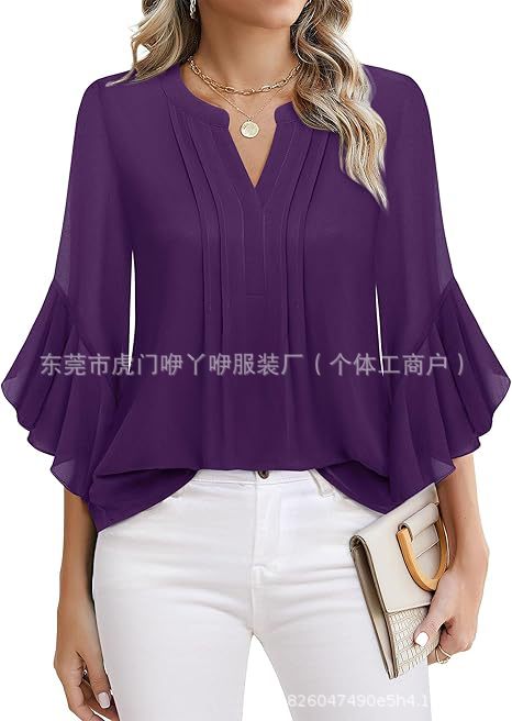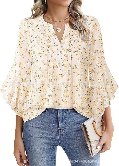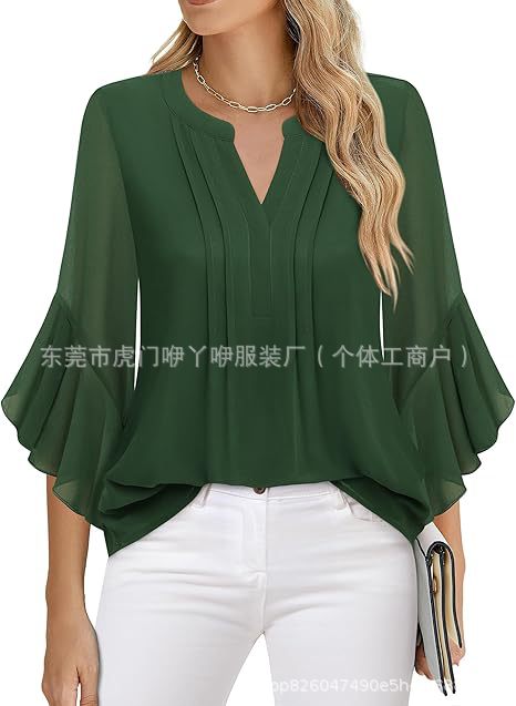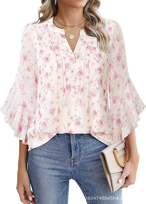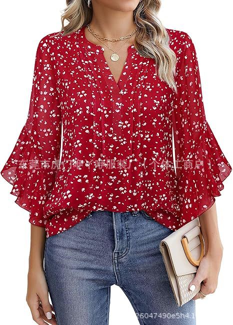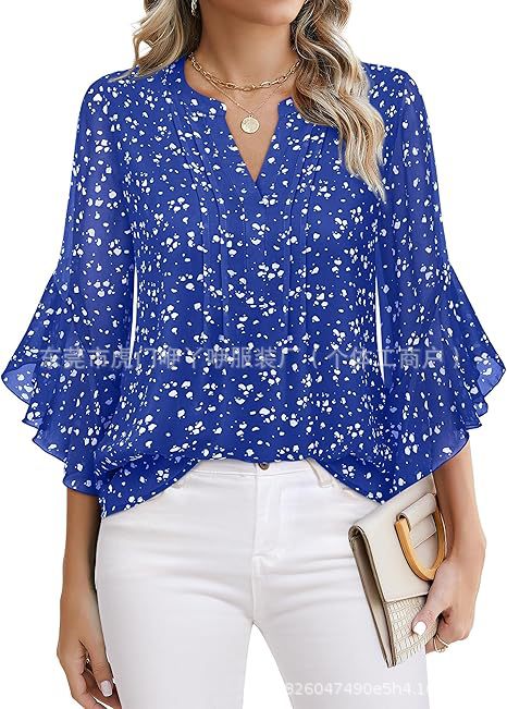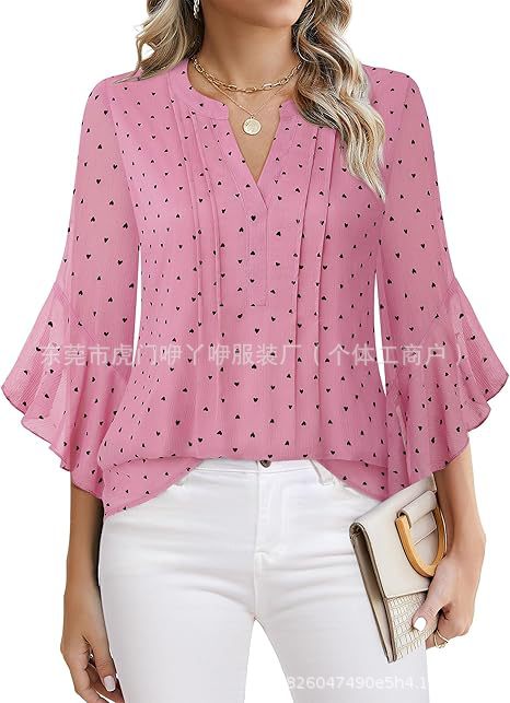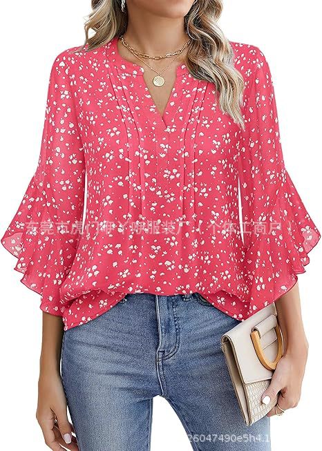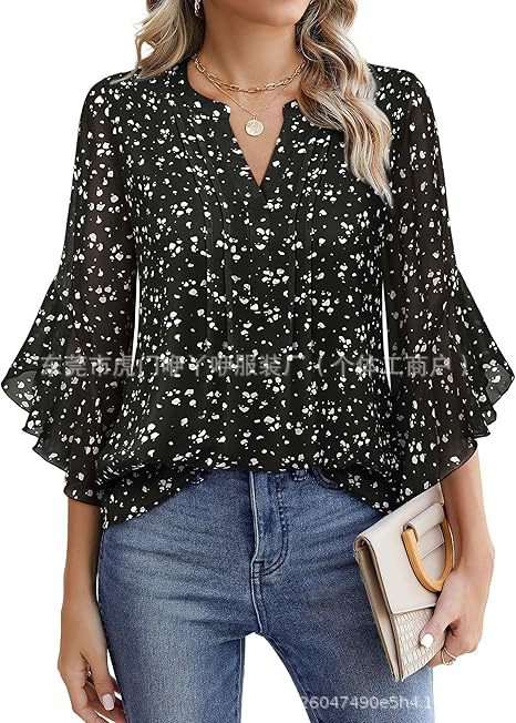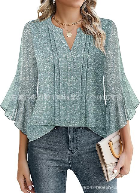 2025 새로운 국경 아마존 여성 7 소매 최고 패션 작품 셔츠 유럽과 미국의 인쇄 된 쉬폰 셔츠스토어 가기