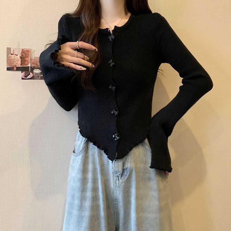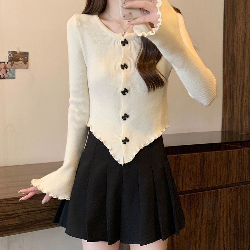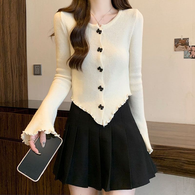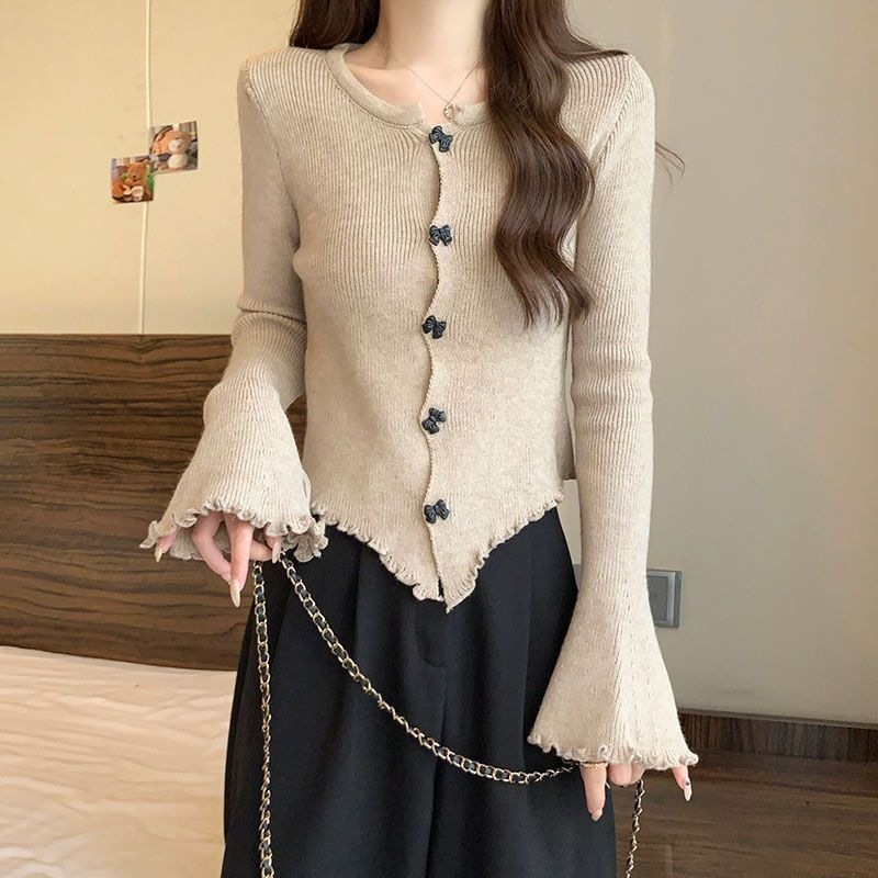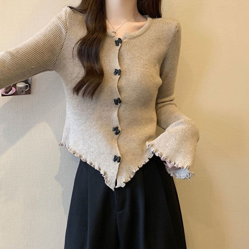 리본 버튼 니트 스웨터 가디건 가을 프렌치 퓨어 러스티 스타일 슬림 스웨터 여성용 탑