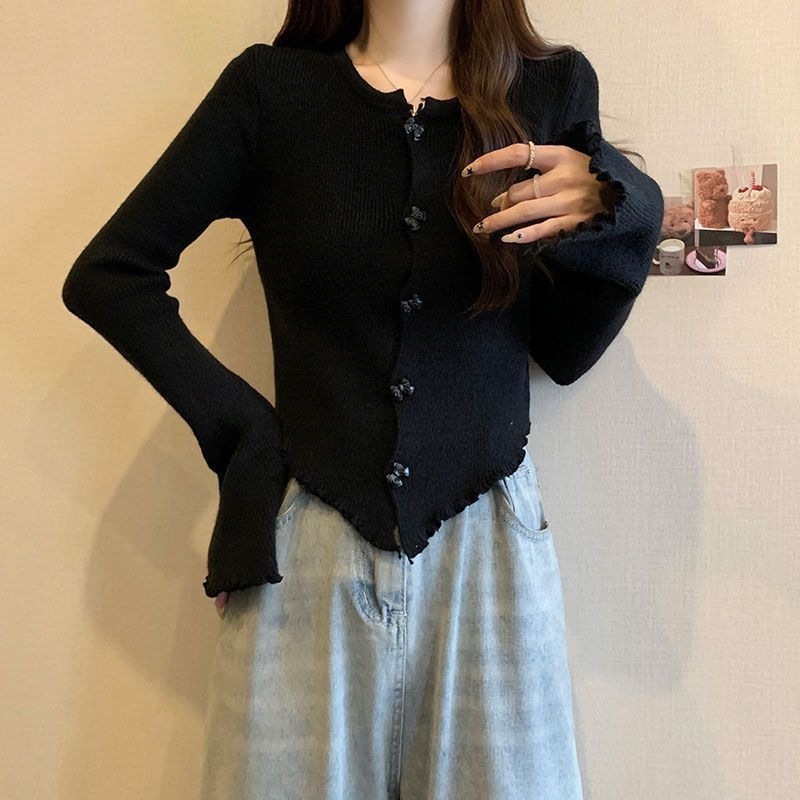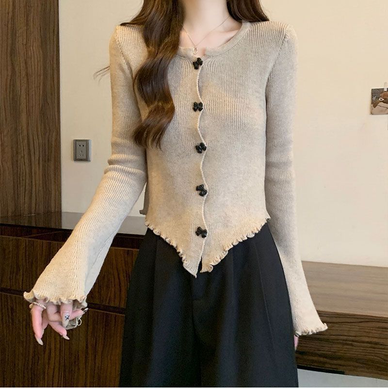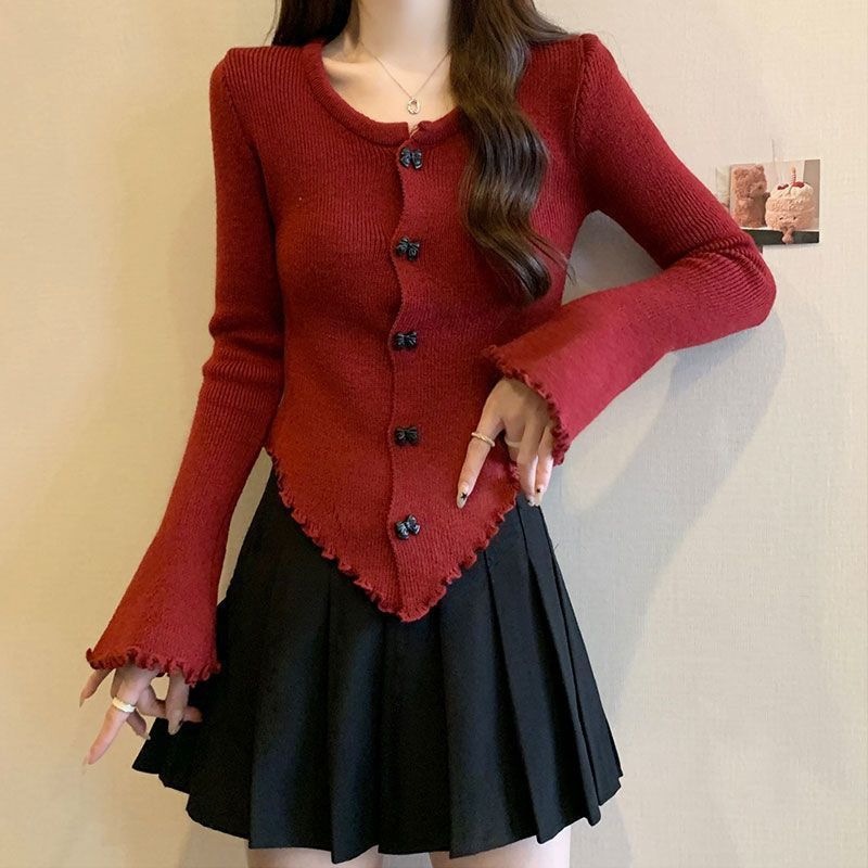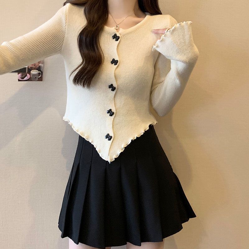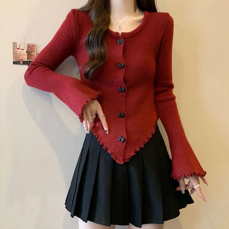 리본 버튼 니트 스웨터 가디건 가을 프렌치 퓨어 러스티 스타일 슬림 스웨터 여성용 탑