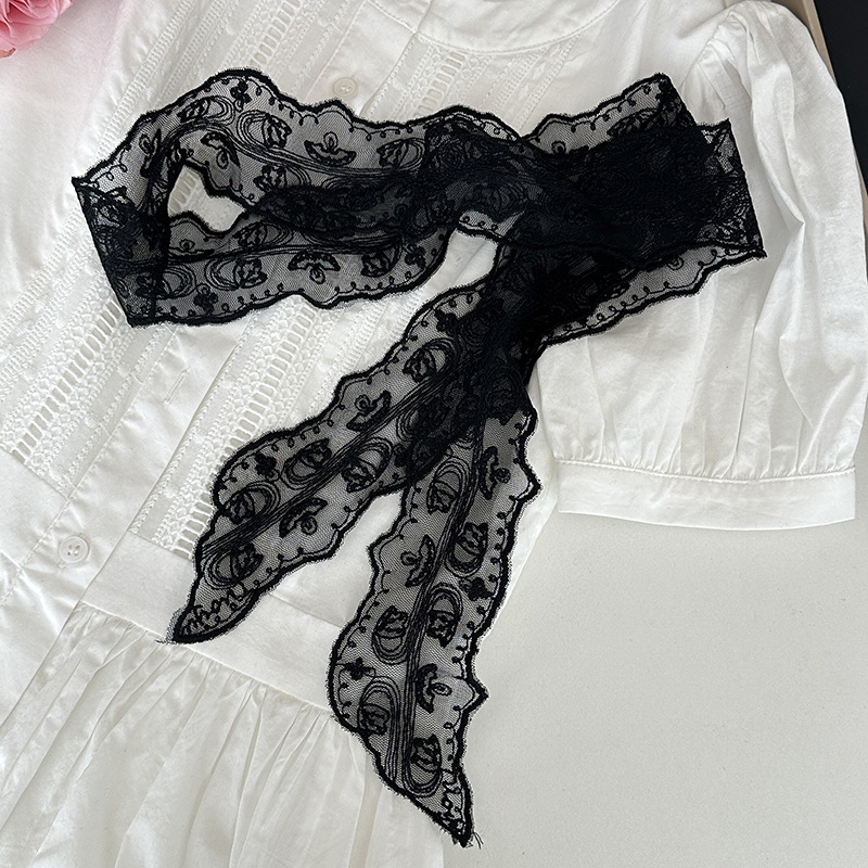 레이스 레이스 리본 요정 한국 자수 꽃 좁은 실크 스카프 고급 센스 슬라이더 스카프 여성용 헤어 액세서리