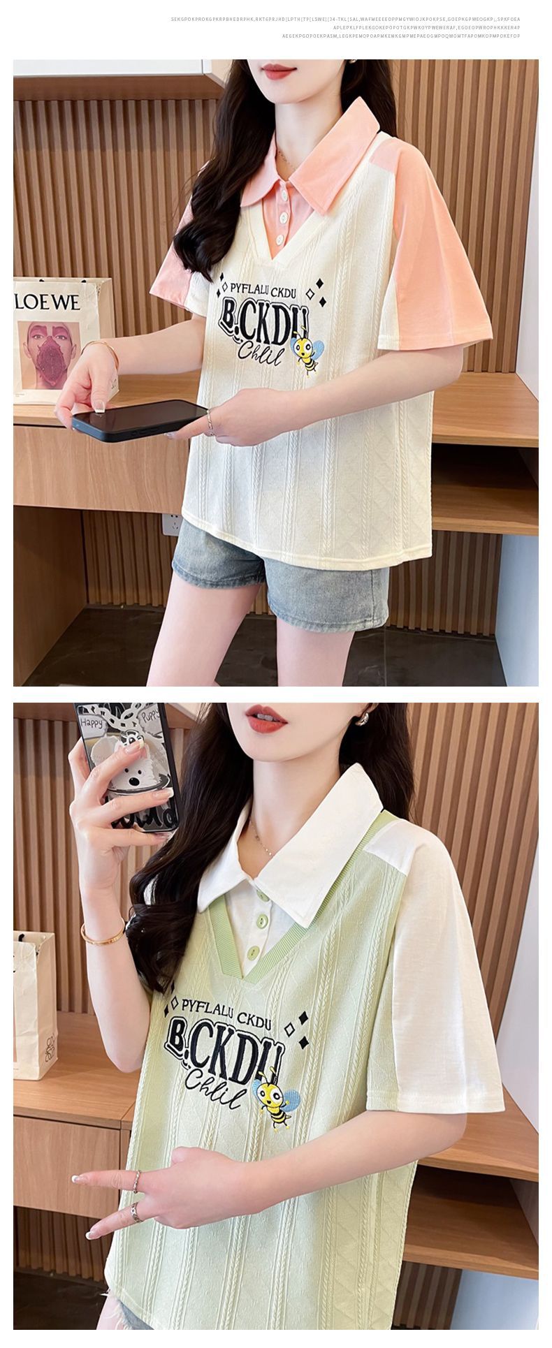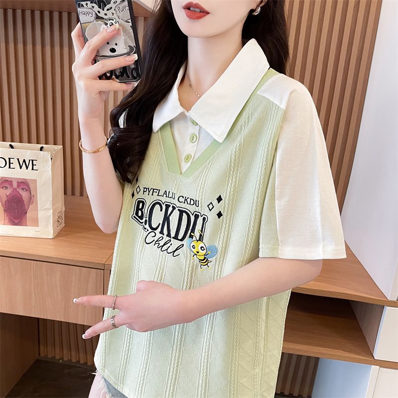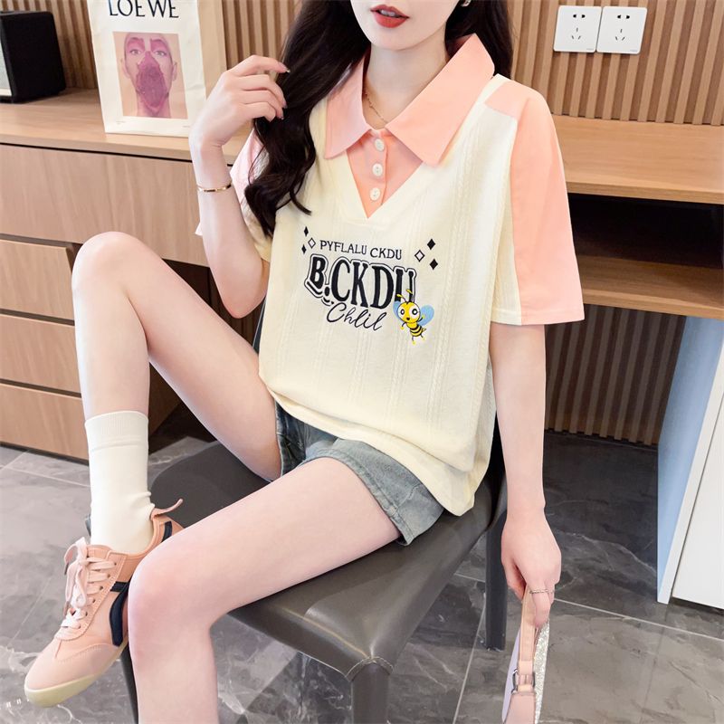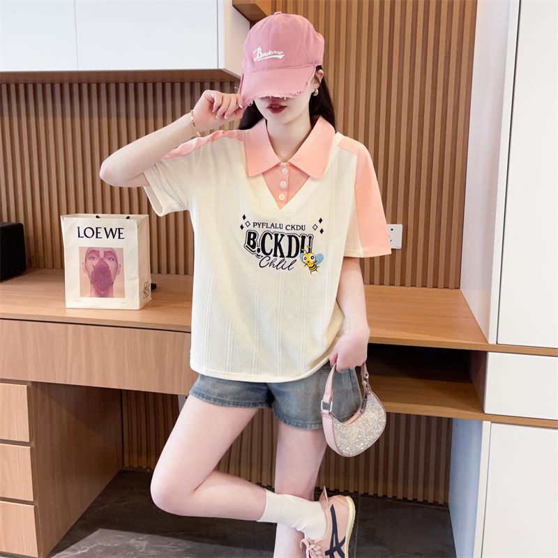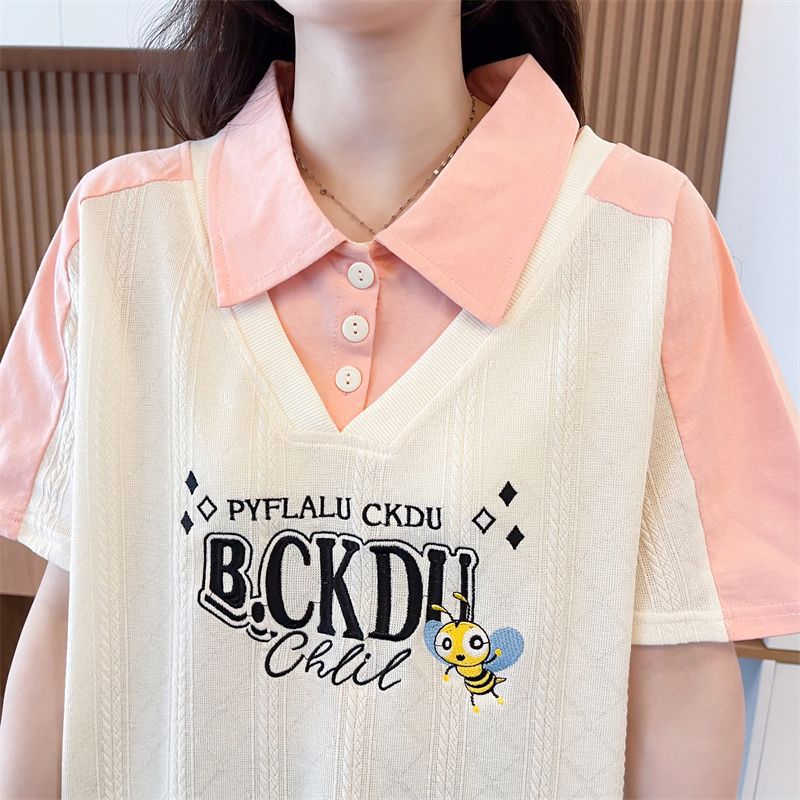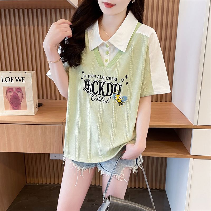 폴로 칼라 반팔 티셔츠 여성 2025 년 새 여름 한국 스타일 플러스 사이즈 느슨한 디자인 감각 틈새 탑스토어 가기