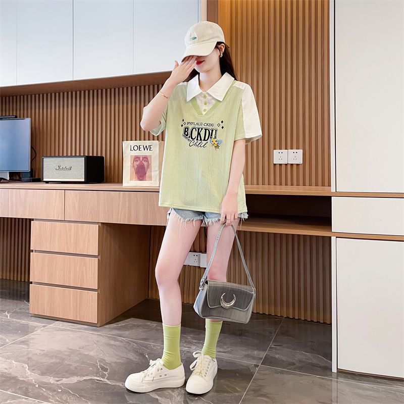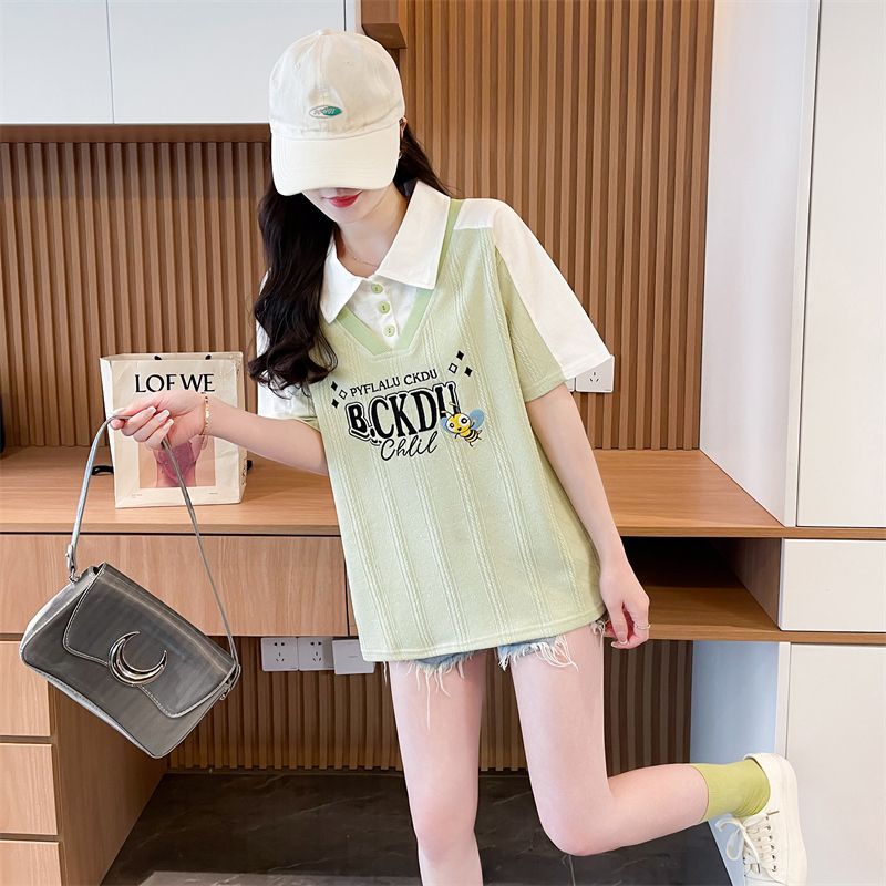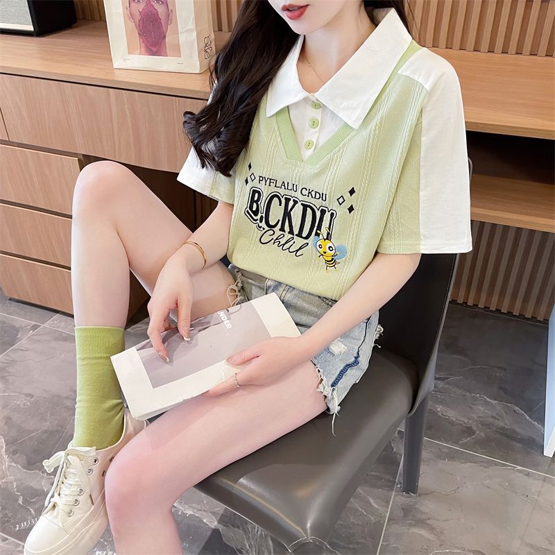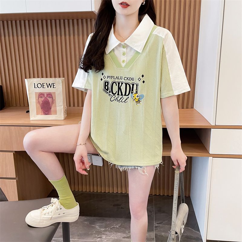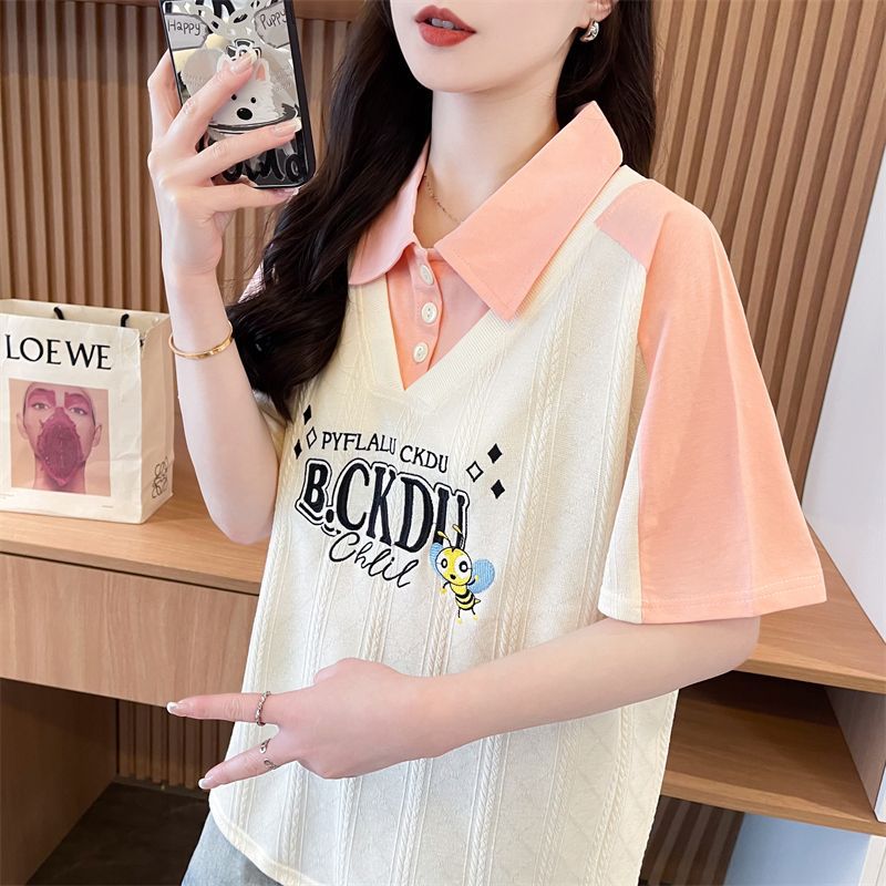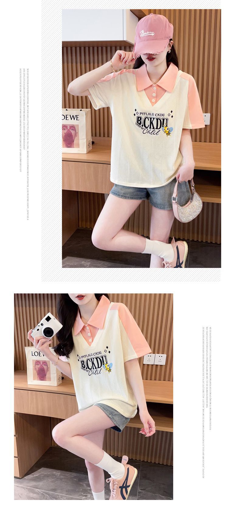 폴로 칼라 반팔 티셔츠 여성 2025 년 새 여름 한국 스타일 플러스 사이즈 느슨한 디자인 감각 틈새 탑스토어 가기