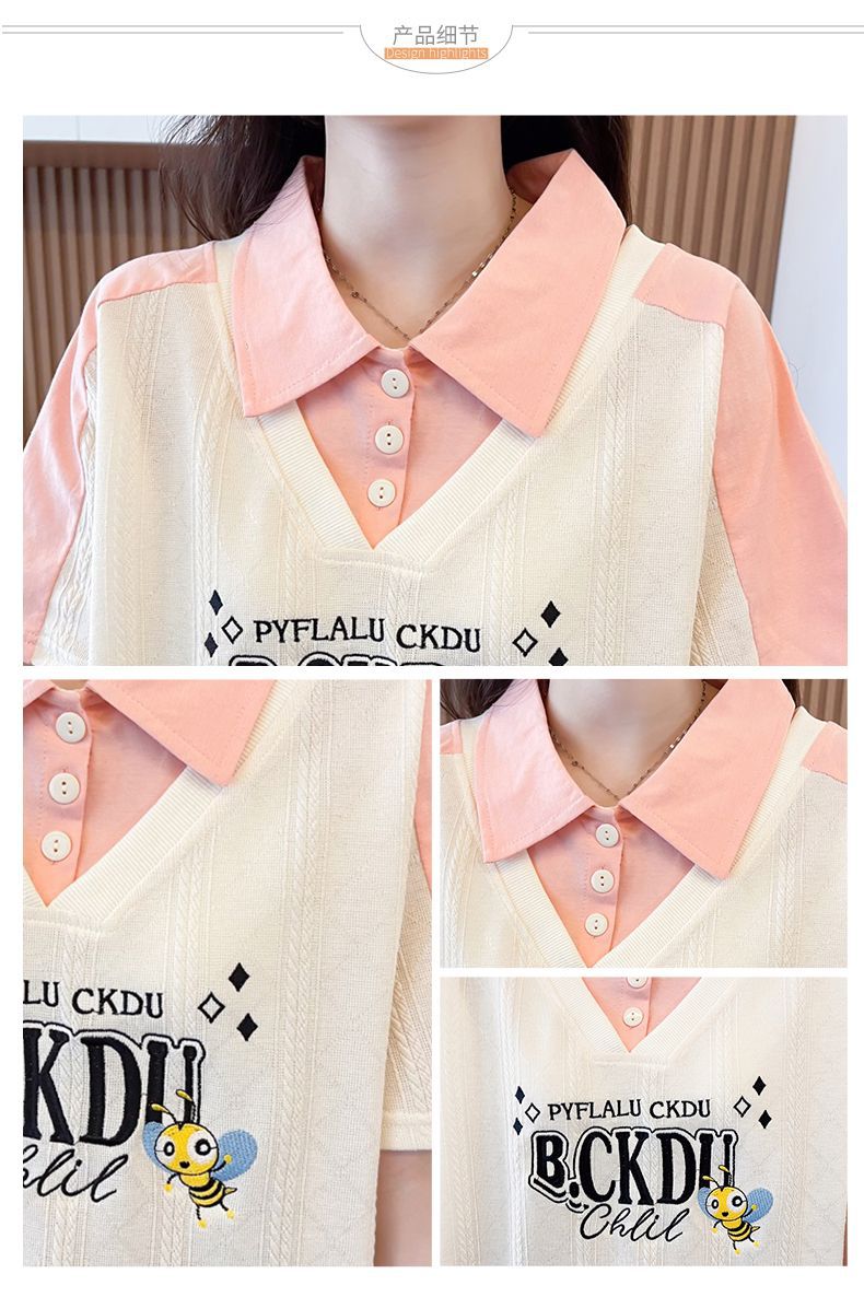 폴로 칼라 반팔 티셔츠 여성 2025 년 새 여름 한국 스타일 플러스 사이즈 느슨한 디자인 감각 틈새 탑